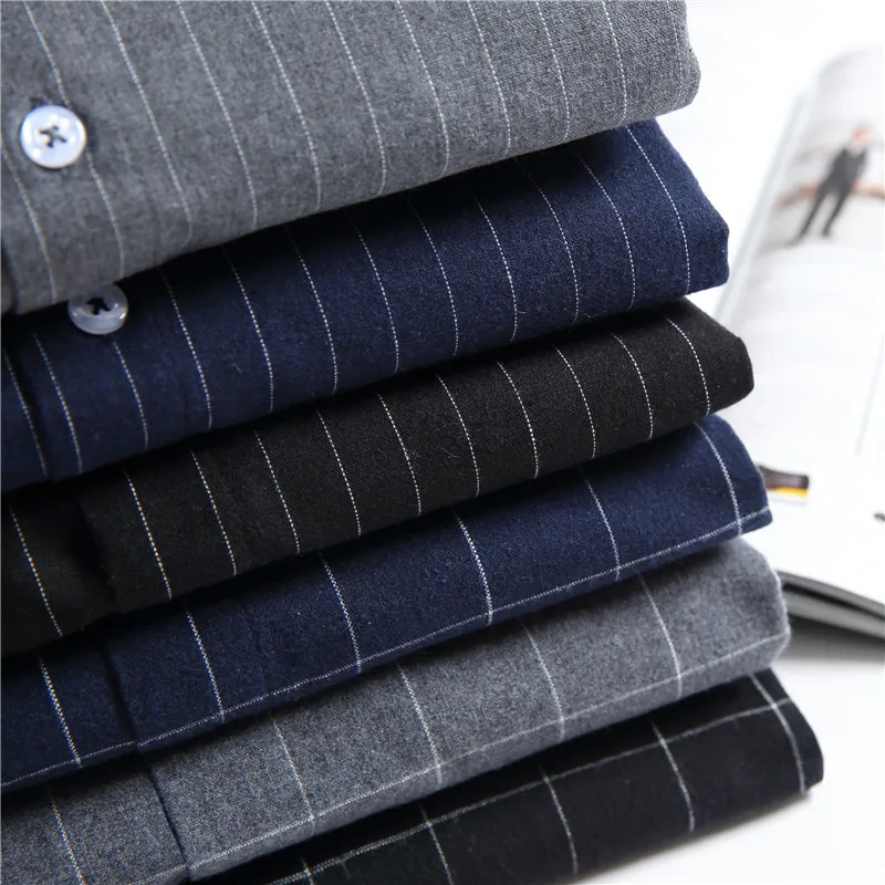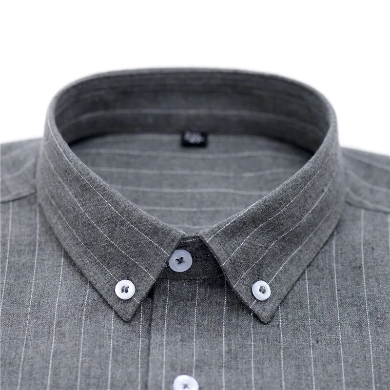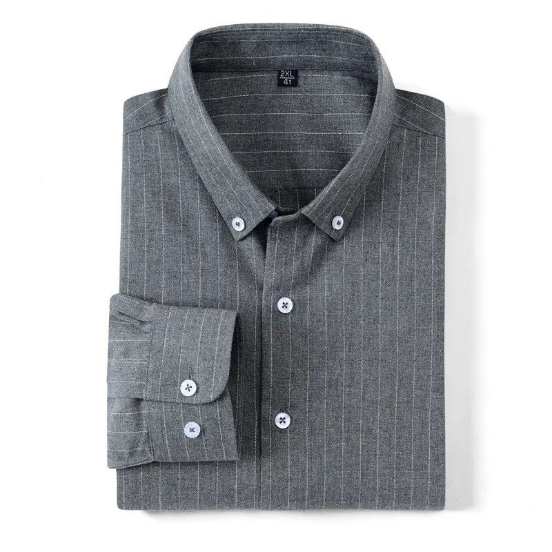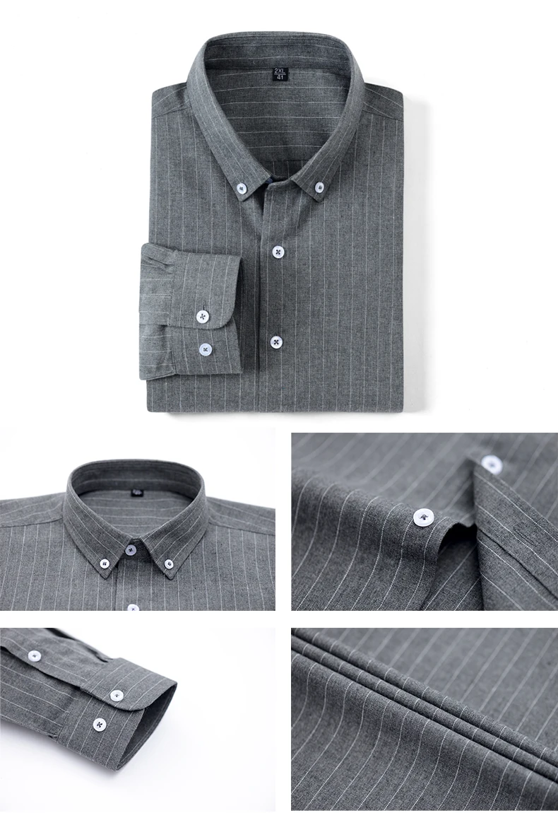 Мужская Повседневная рубашка в полоску, серая мягкая рубашка из матовой ткани с длинными рукавами, повседневная, без карманов, для отдыха, на веснуосень