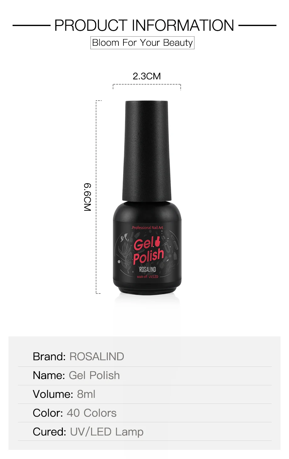 ROSALIND 8 мл отмачиваемый чистый цветной гель для ногтей яркий для дизайна ногтей светодиодный/УФ-лампа