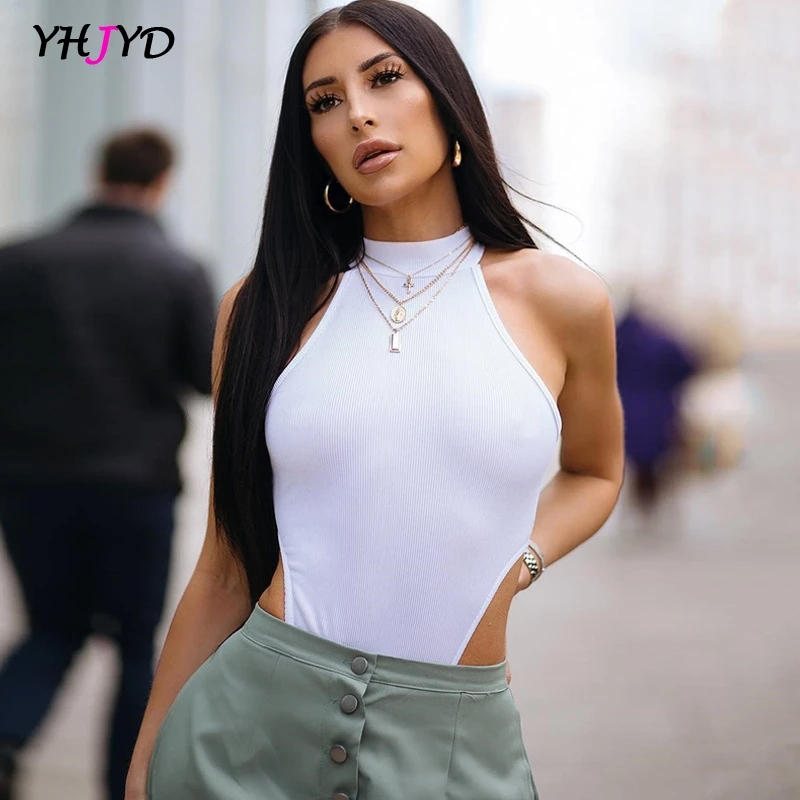 Боди женское трикотажное в рубчик, с высоким воротником, лето 2021