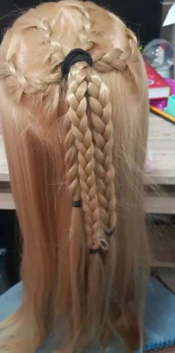 мне попалась лысоватая блондинка, торчат волосы короткие, на макушке видна черная разметка. продавец вернул часть денег, все хорошо. в подарок штуки для причёсок.