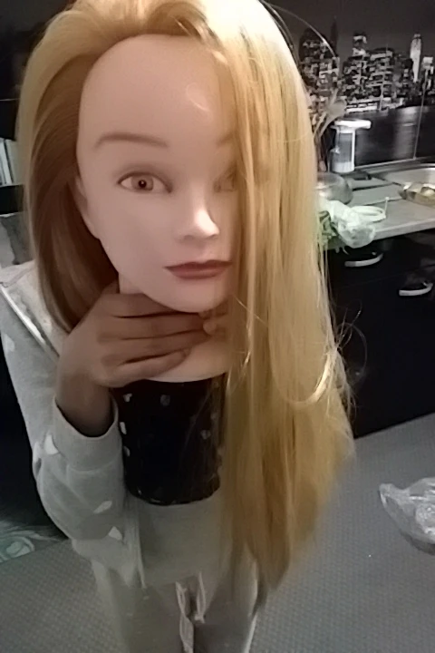 Наконец-то получила этот товар, упаковано в пакет, но голова не повредилась, волосы светлее, чем заказывали и лезут. С продавцом не общалась.
