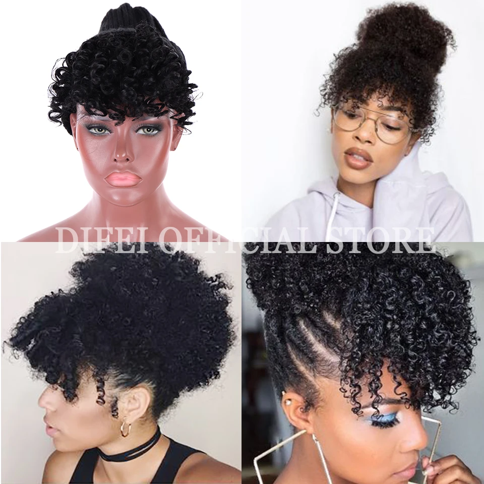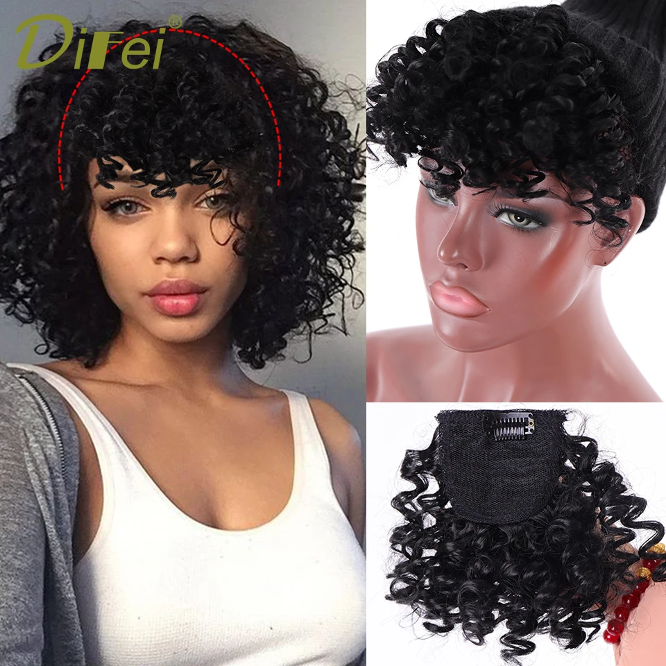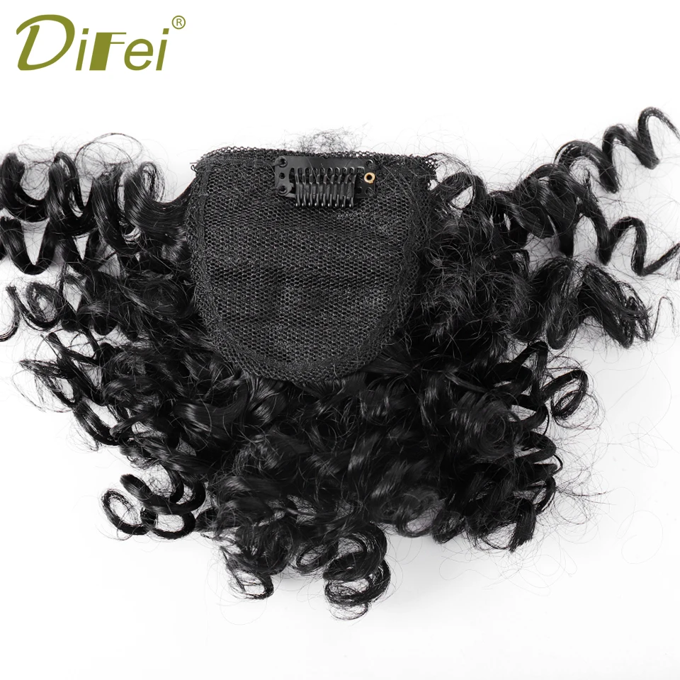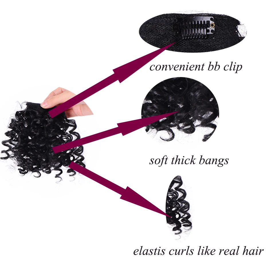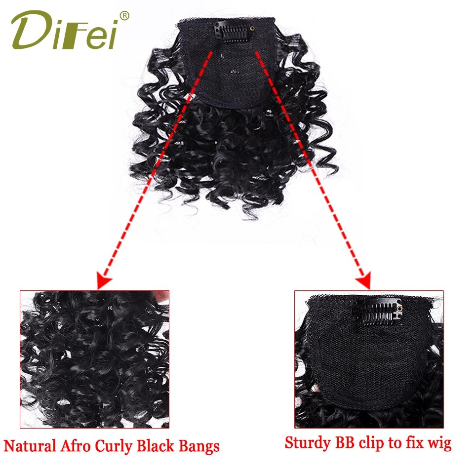 Короткие афро кудрявые волосы челка высокая температура стойкие волокна синтетические шиньоны натуральный черный зажим спереди волосы для наращивания