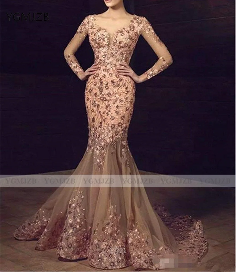 Пышные Роскошные Выпускные платья 2021 Русалка для черных девушек бусины с длинным рукавом со съемным шлейфом Официальные Вечерние платья