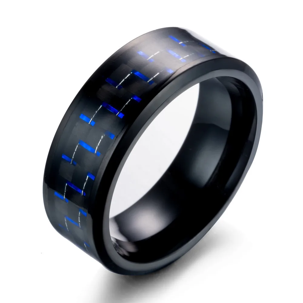 Мужские кольца из титановой стали, черное, красное, углеродное волокно, массивные кольца в стиле панк, вечерние, широкие, 8 мм, обручальные кольца