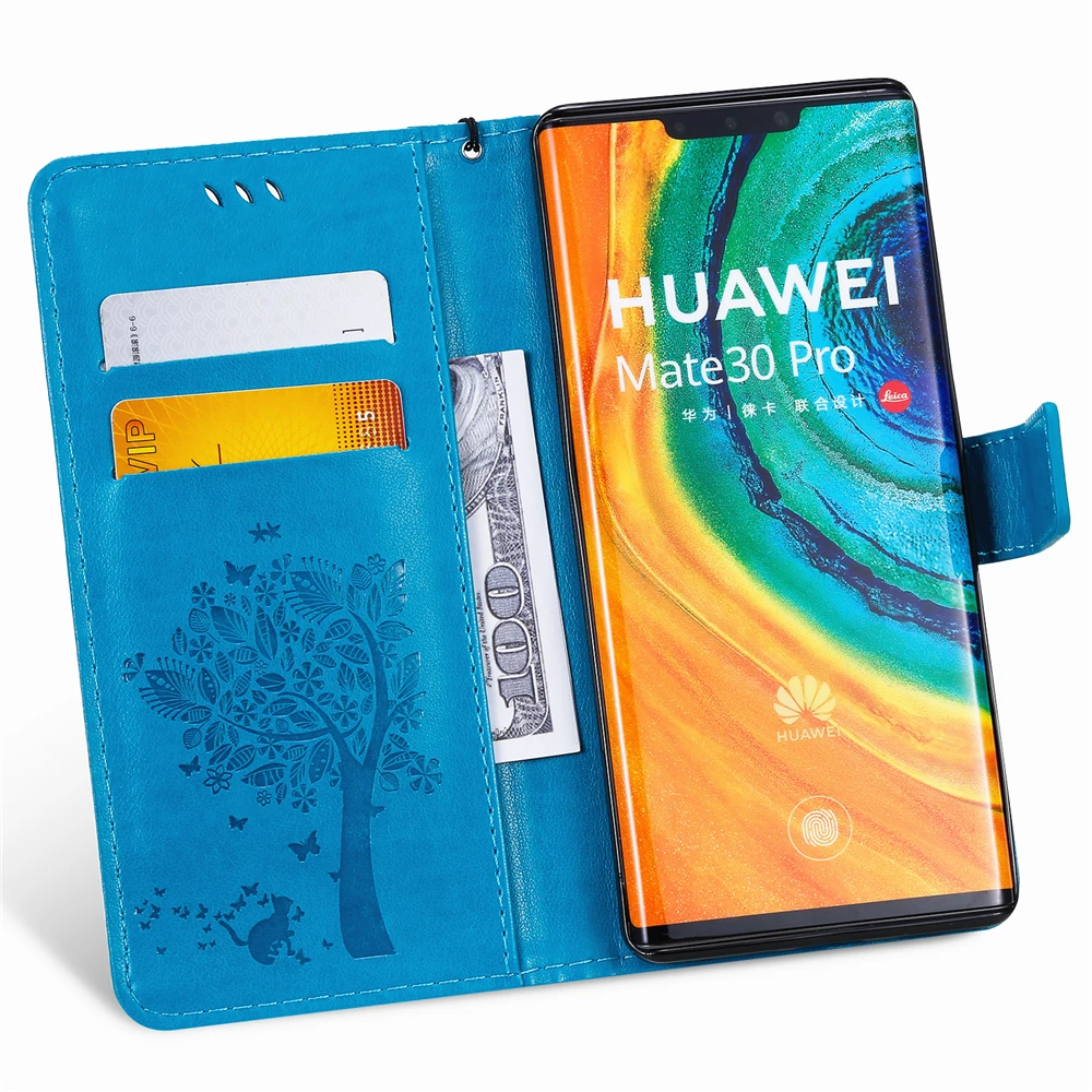 Кожаный флип-чехол для Coque Huawei P40 Pro P10 P20 P30 P40 Lite чехол-кошелек Huawei Mate 10 Lite 20 30 Pro 3D чехол для телефона с кошкой
