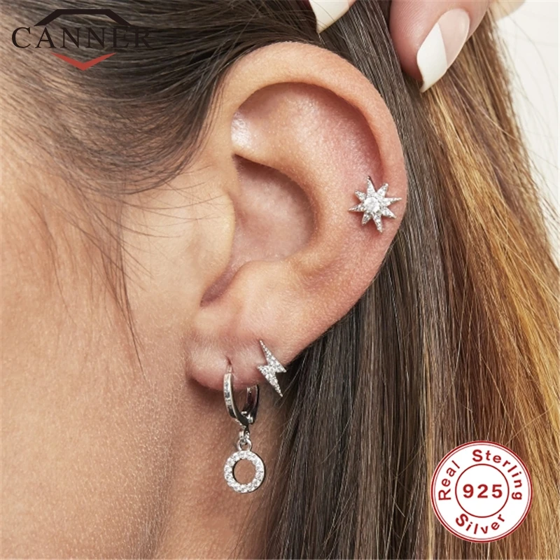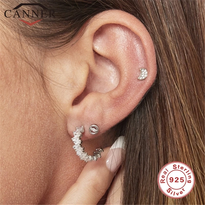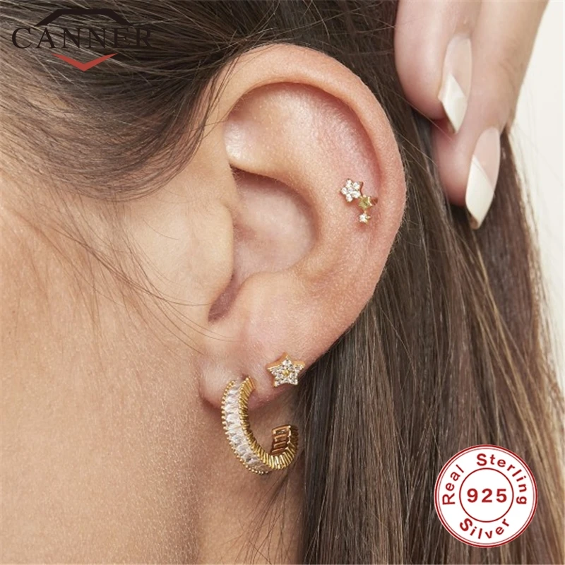 Серьга-гвоздик с фианитом женская, модный серьги, Надеваемые На ушной хрящ Для Пирсинга Ушей из стерлингового серебра 925 пробы с маленьким цирконием, Подарочная бижутерия, 1 шт.