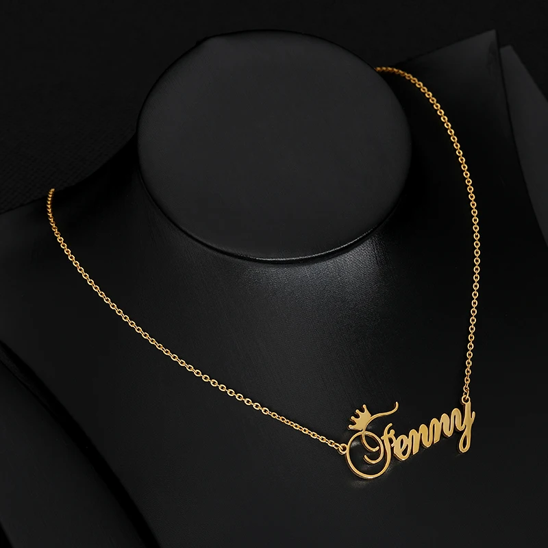 Ожерелье с короной и именем на заказ, Золотая цепочка, ожерелье с короной принцессы, для девочек и детей