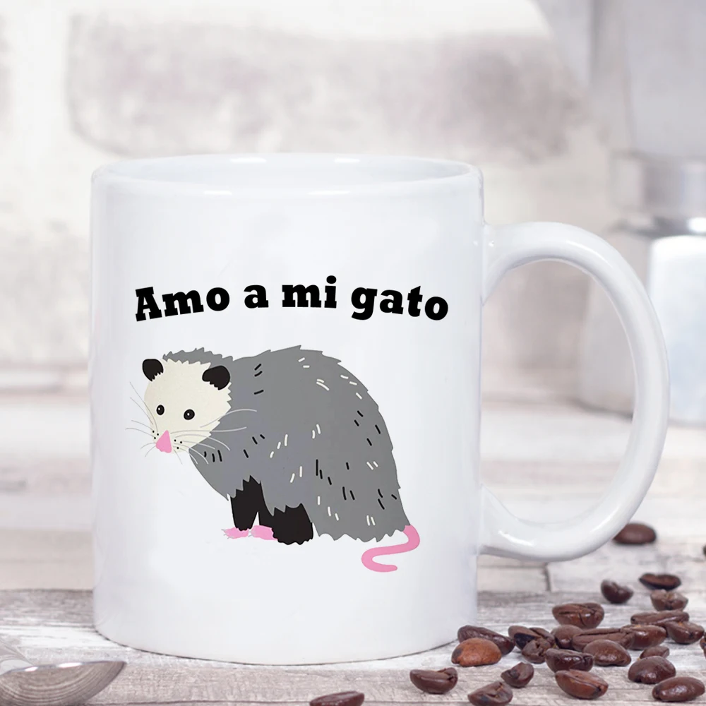 Белая керамическая кофейная чашка I Love My Cat Opossum, 11 унций, кружка "друзья", подарок