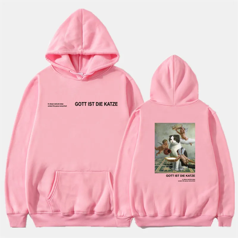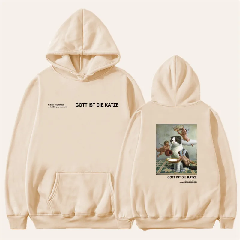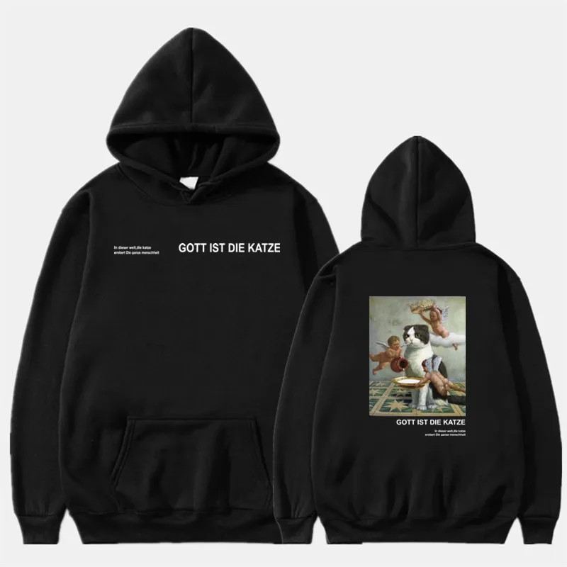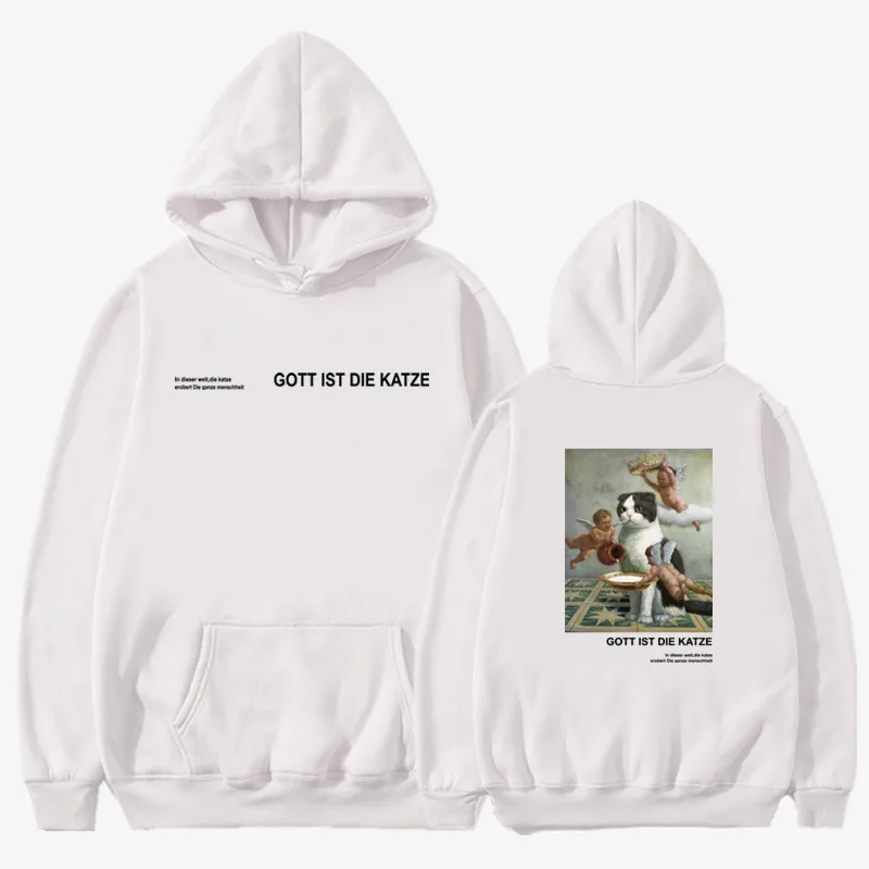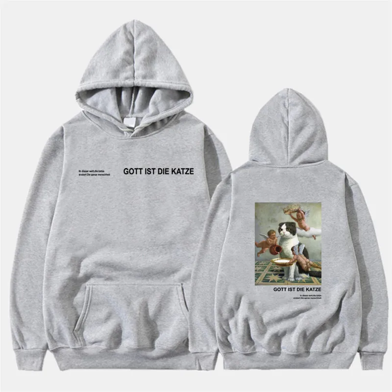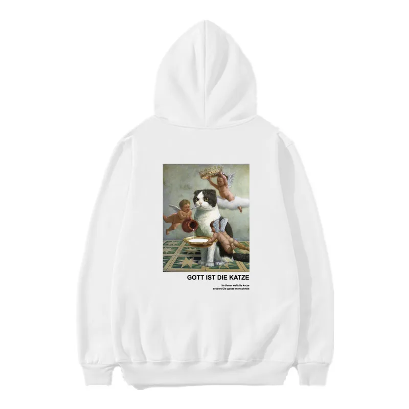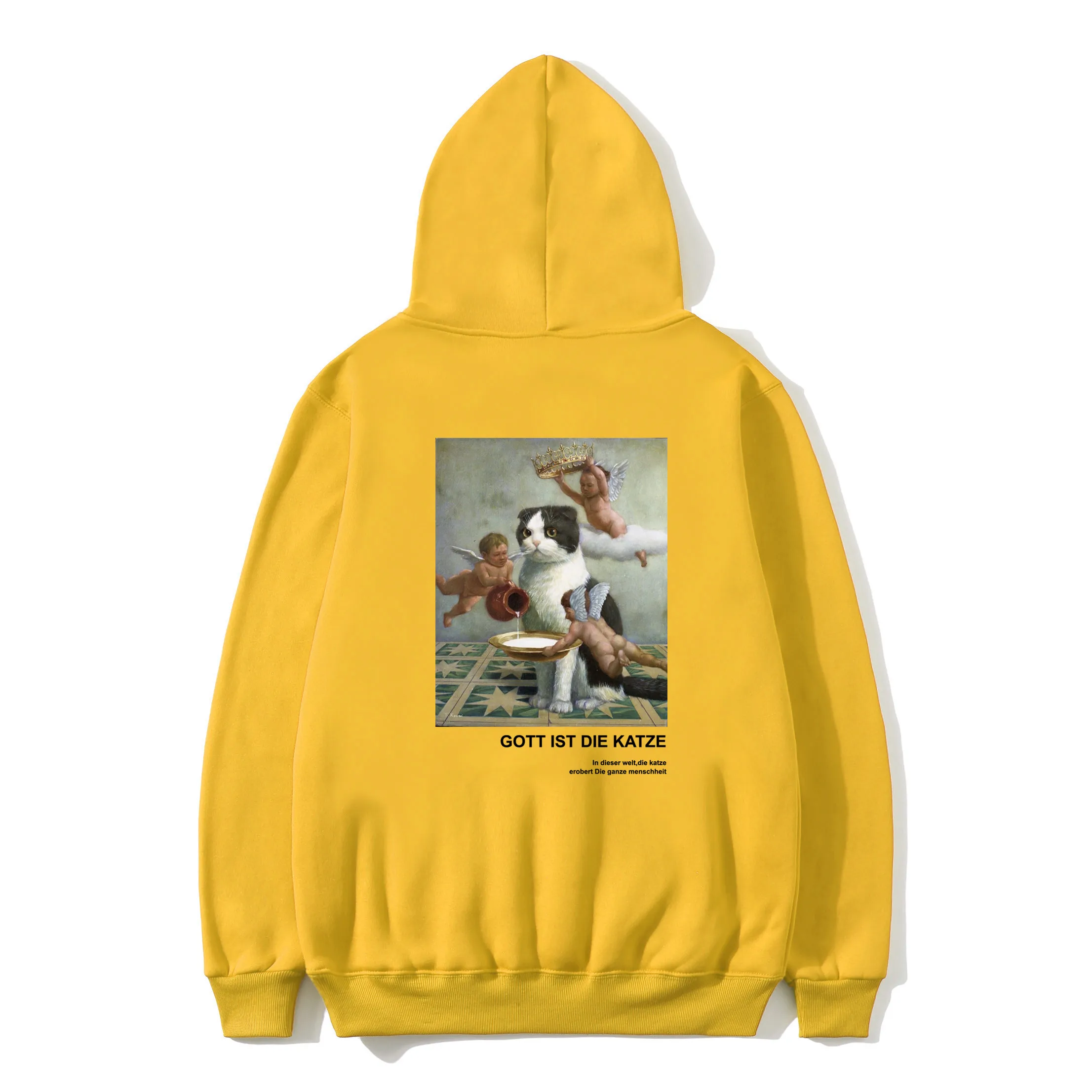 Толстовка Мужскаяженская с капюшоном, Свитшот в стиле хип-хоп, уличная одежда в стиле Харадзюку с принтом ангела и кота, смешные худи, пуловер, осень 2020
