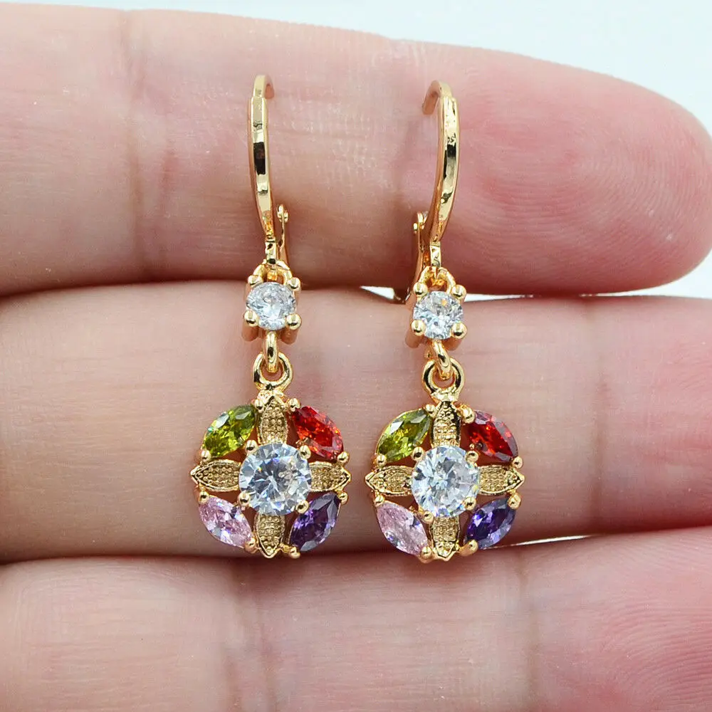 Foydjew серьги с покрытием из 18-каратного золота, инкрустированные радужным топазом, цирконием, застежка для ушей, женские серьги-капельки, оптовая продажа
