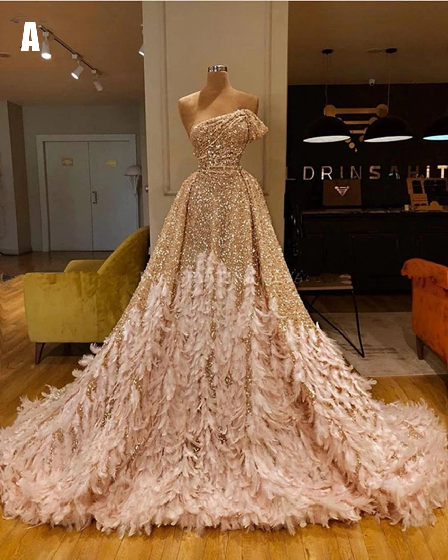 Блестящие золотые блестки русалка перо африканские платья для выпускного вечера с длинным рукавом на одно плечо вечернее платье размера плюс выпускного вечера