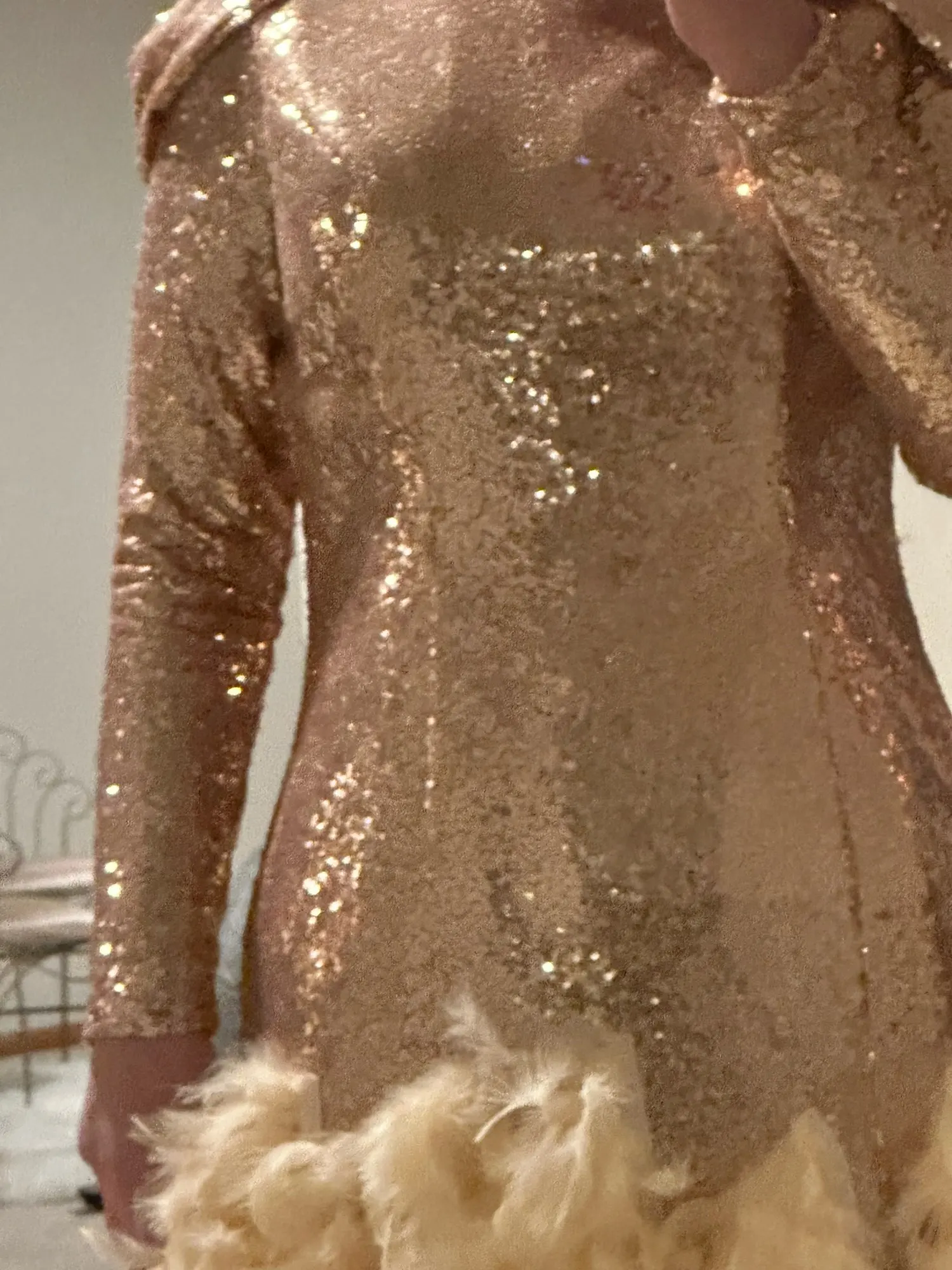 Блестящее вечернее платье с золотыми блестками и юбкой-годе с длинн...
