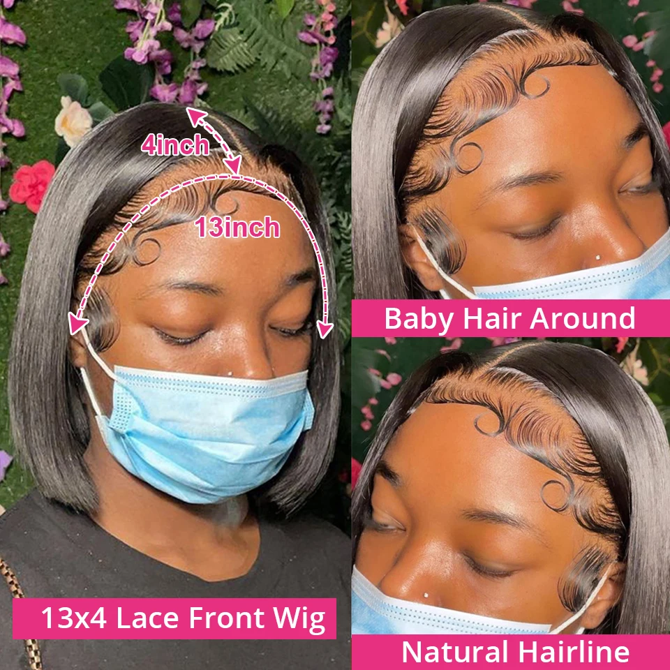 Короткий парик Боб, бразильские прямые человеческие волосы, парики плотности 180, человеческие волосы на шнурке для женщин, предварительно выщипанные волосы