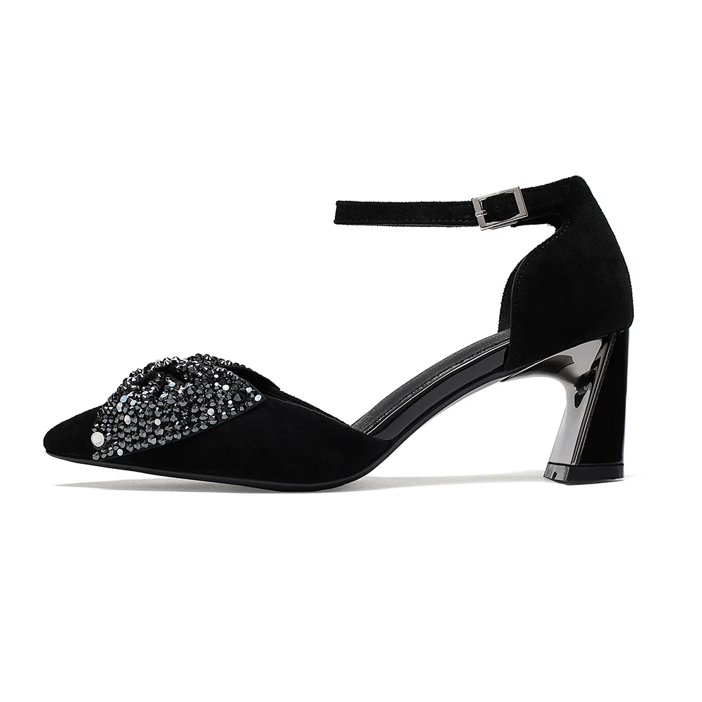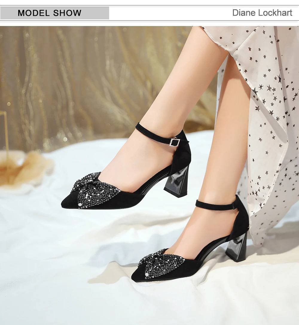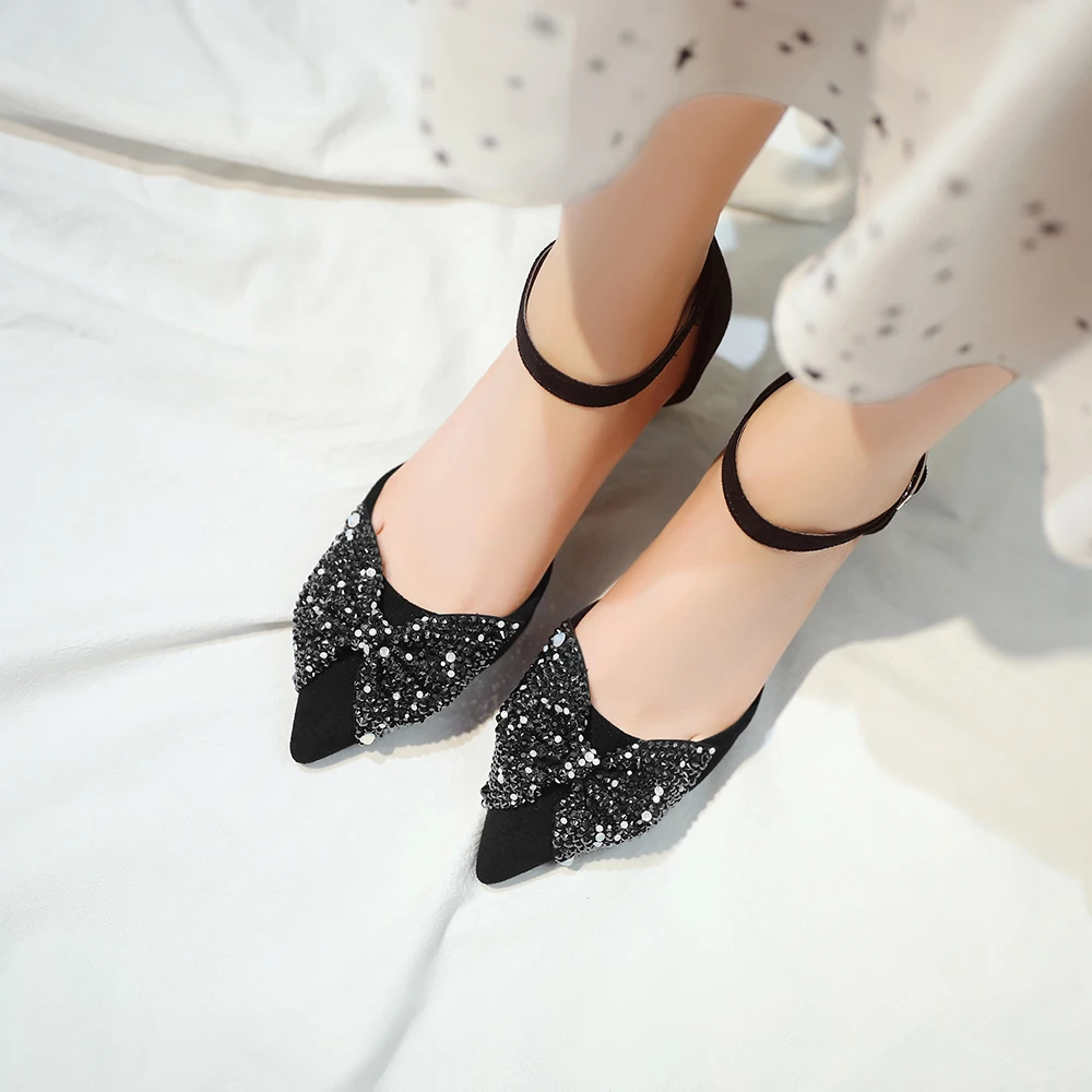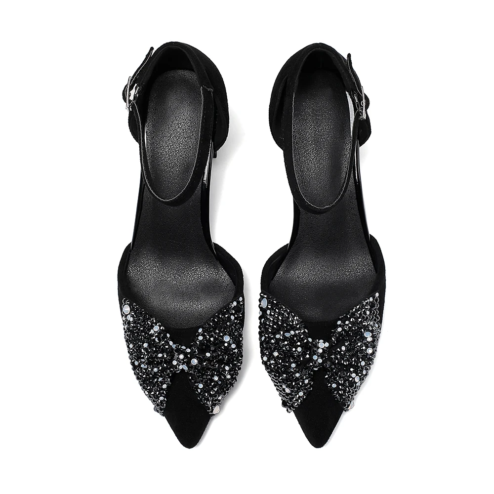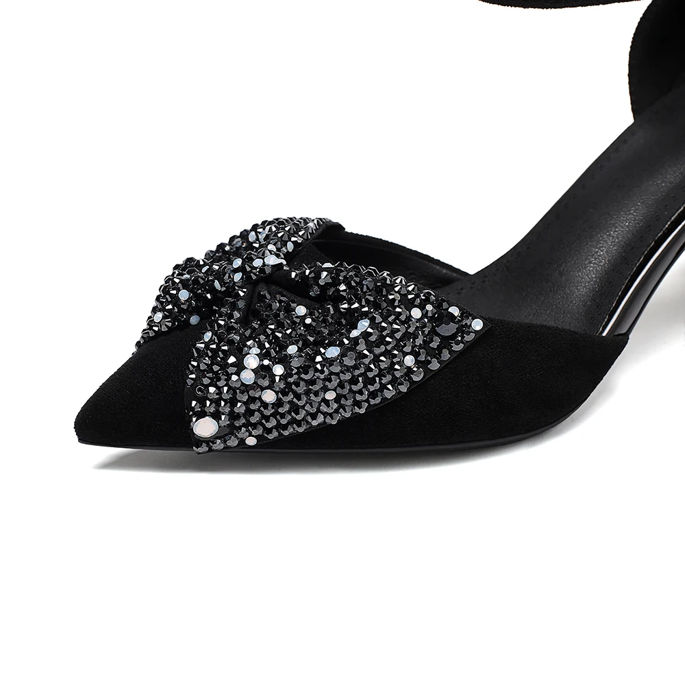 Туфли женские с бантом, Классические босоножки из флока, заостренный носок, высокий каблук, вечерние туфли-лодочки, лето