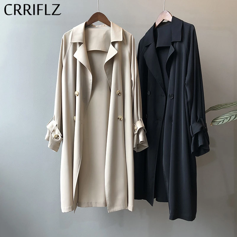Тренч Женский Длинный свободного кроя, повседневный однобортный плащ, верхняя одежда, CRRIFLZ, весна 2020
