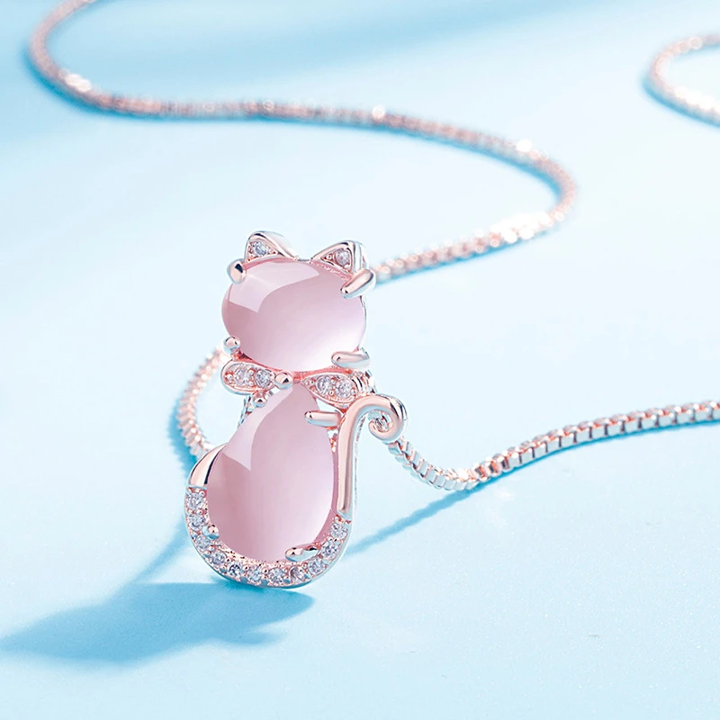 Мода милый розовый опал кошка кулон ожерелье леди девушка гламур юв...