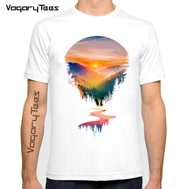 Новинка, креативная Летняя мужская футболка Vagarytees с изображением восхода солнца, Повседневная модная футболка с коротким рукавом, хипстерский топ с принтом в виде природного пейзажа