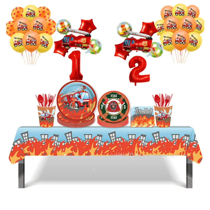 Пожарный тема одноразовая посуда детская День рождения Бумага кружки, тарелки, салфетки для малышей с изображением пожарной машины для маленьких мальчиков, для вечеринки в честь будущего рождения Декор поставки