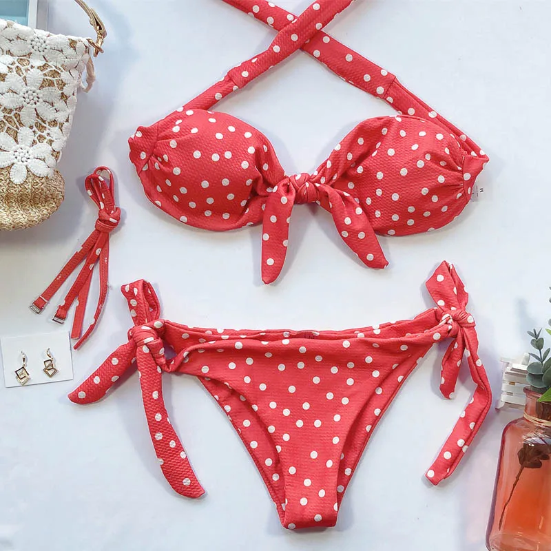 2022 сексуальный женский купальник стринги бикини купальник женский бандо в горошек комплект бикини с бантом Бразильский купальный костюм для женщин