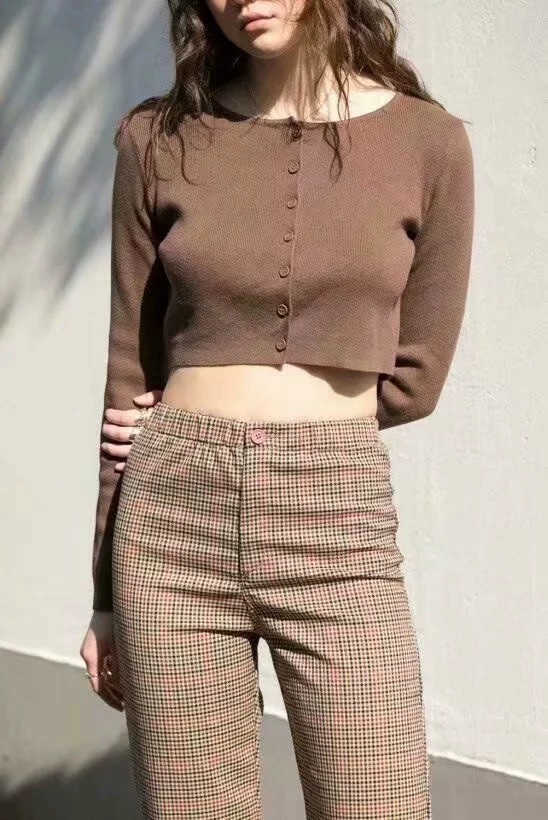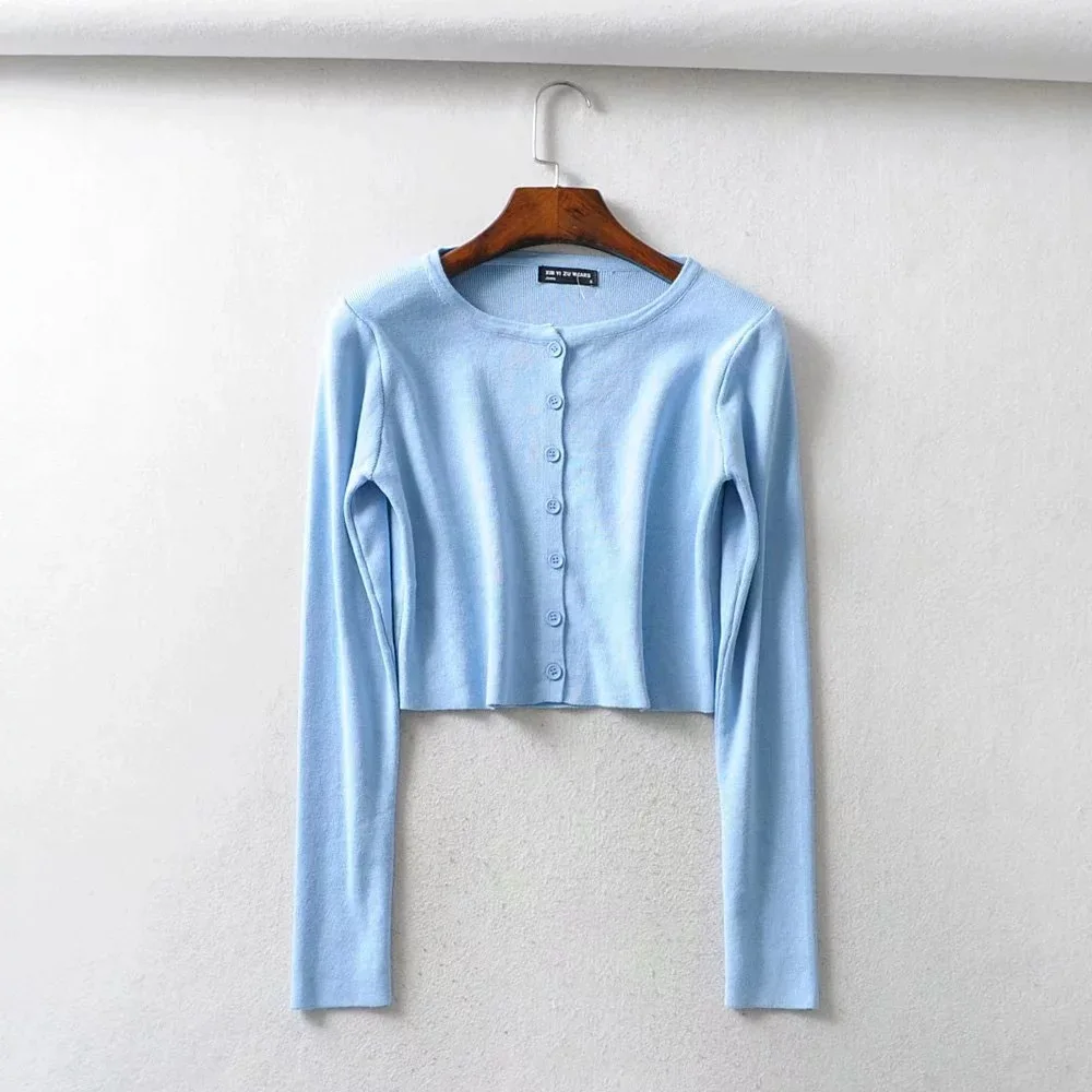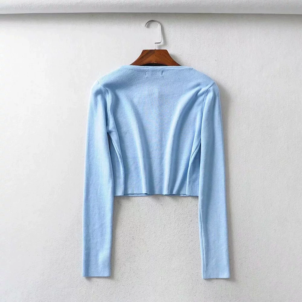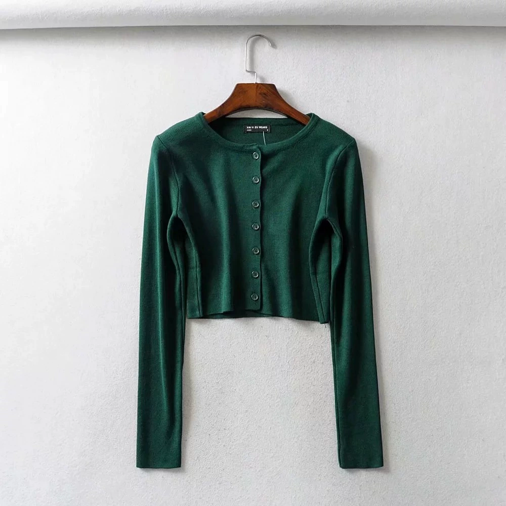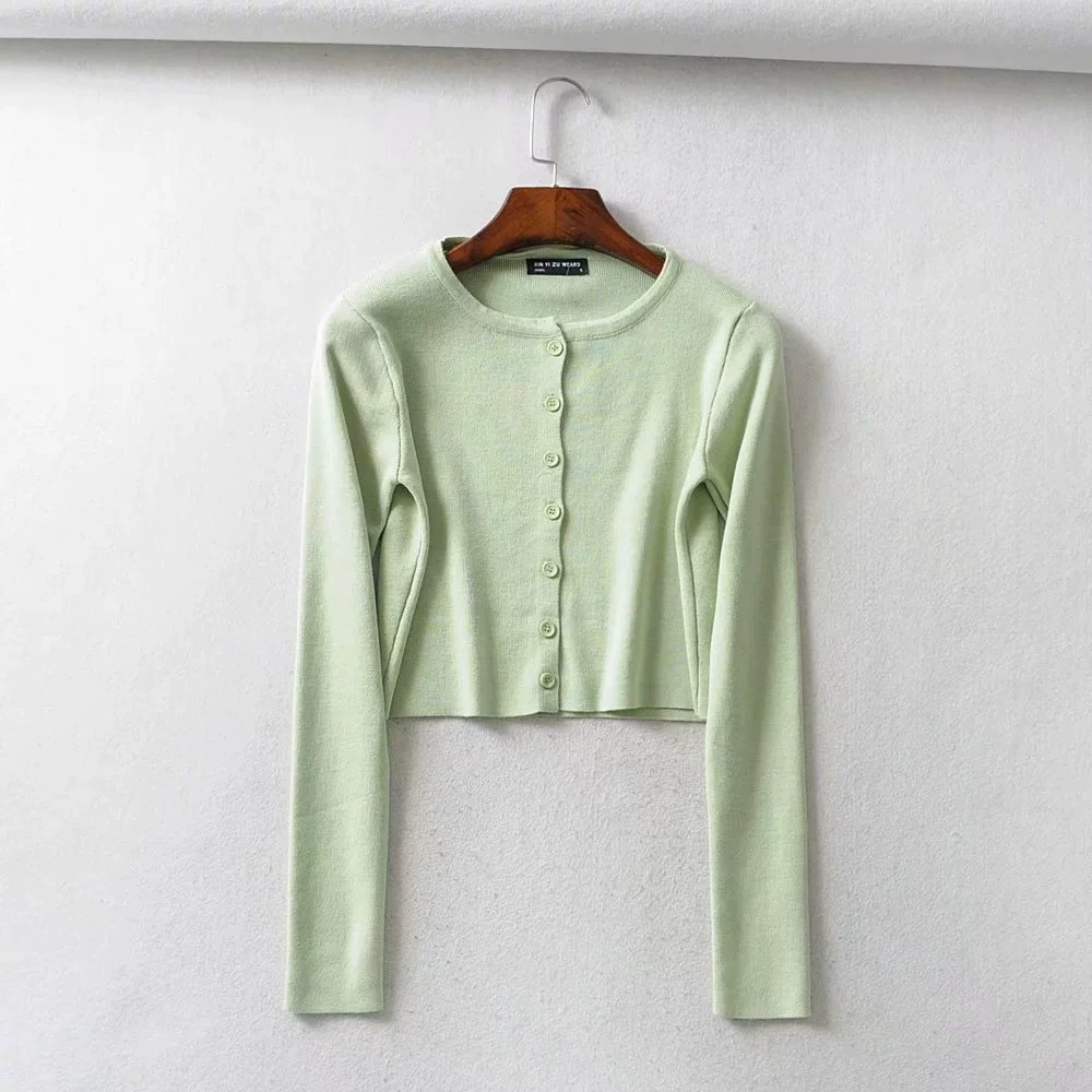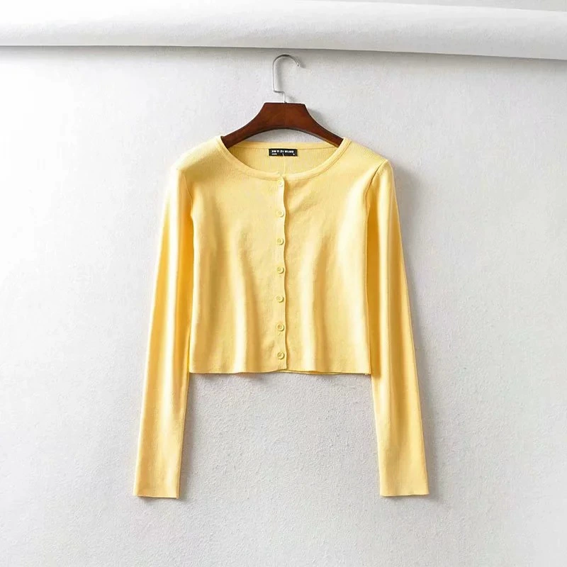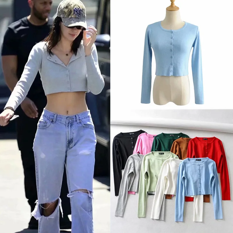 Женский укороченный топ, брендовый кардиган с круглым вырезом, свитер на пуговицах, Женский Топ с длинным рукавом, женская рубашка с Брэнди Мел Амара