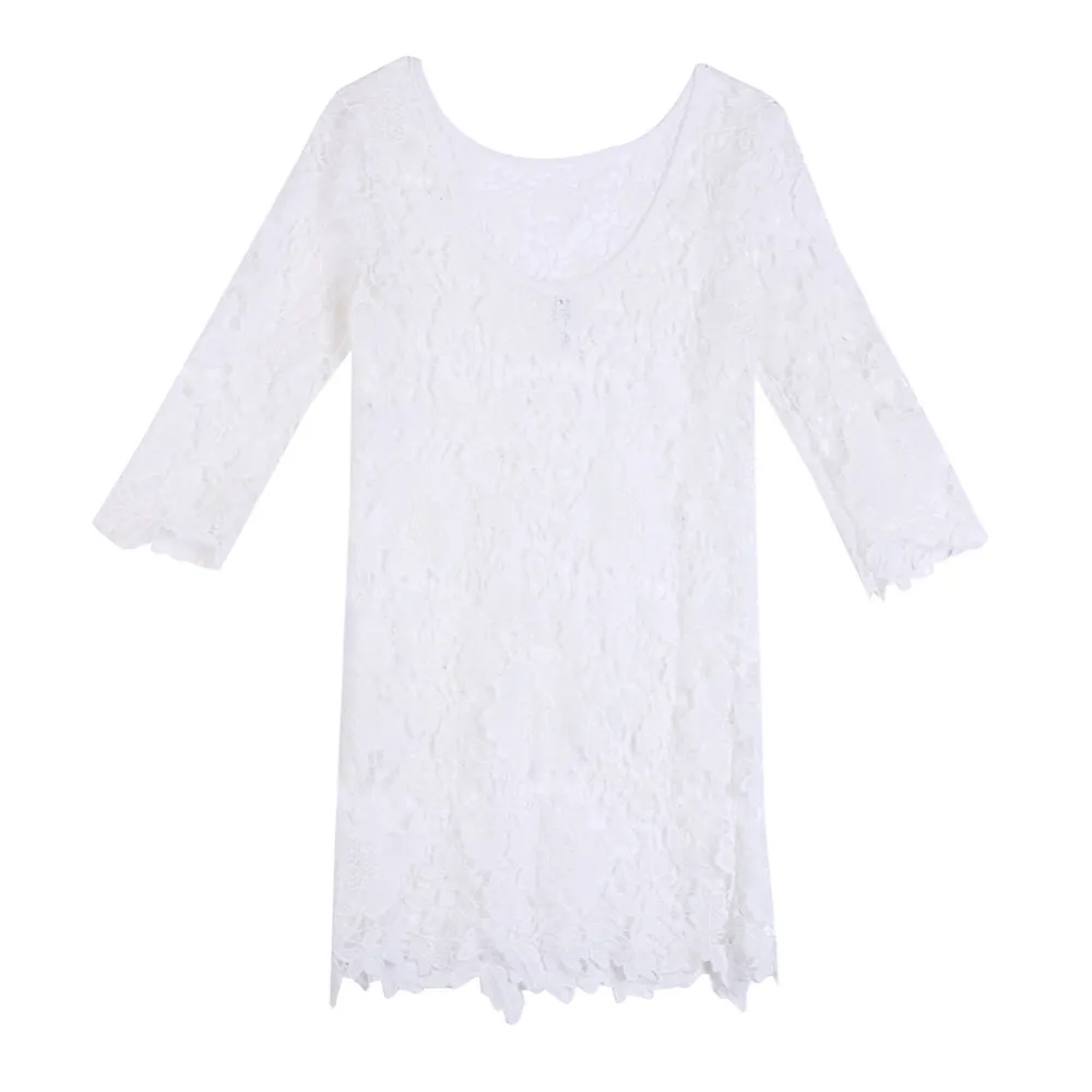 Платье женское кружевное однотонное, прозрачное пляжное пикантное м...