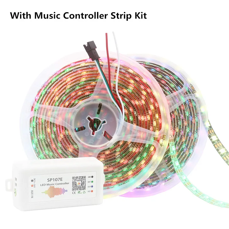 DC 5V WS2812B WS2812 светодиодная Пиксельная полоса индивидуально Адресуемая умная Светодиодная лента светильник + музыка Bluetooth WiFi контроллер комплект питания 5m