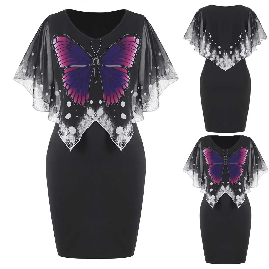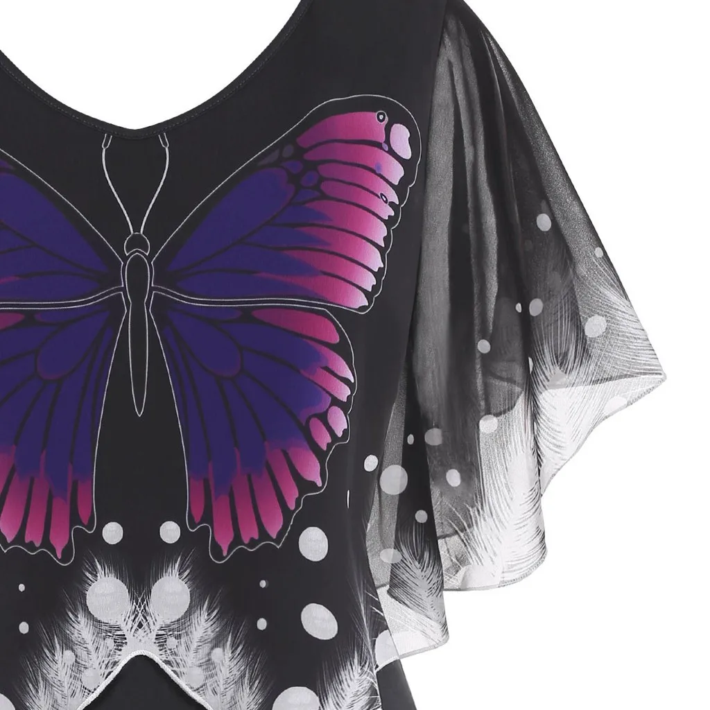 1. Особенности: большой размер, свободный, круглый вырез, принт с бабочками, короткий рукавПляжная повседневная одежда; стильный и модный дизайн; простой топ; модное платье