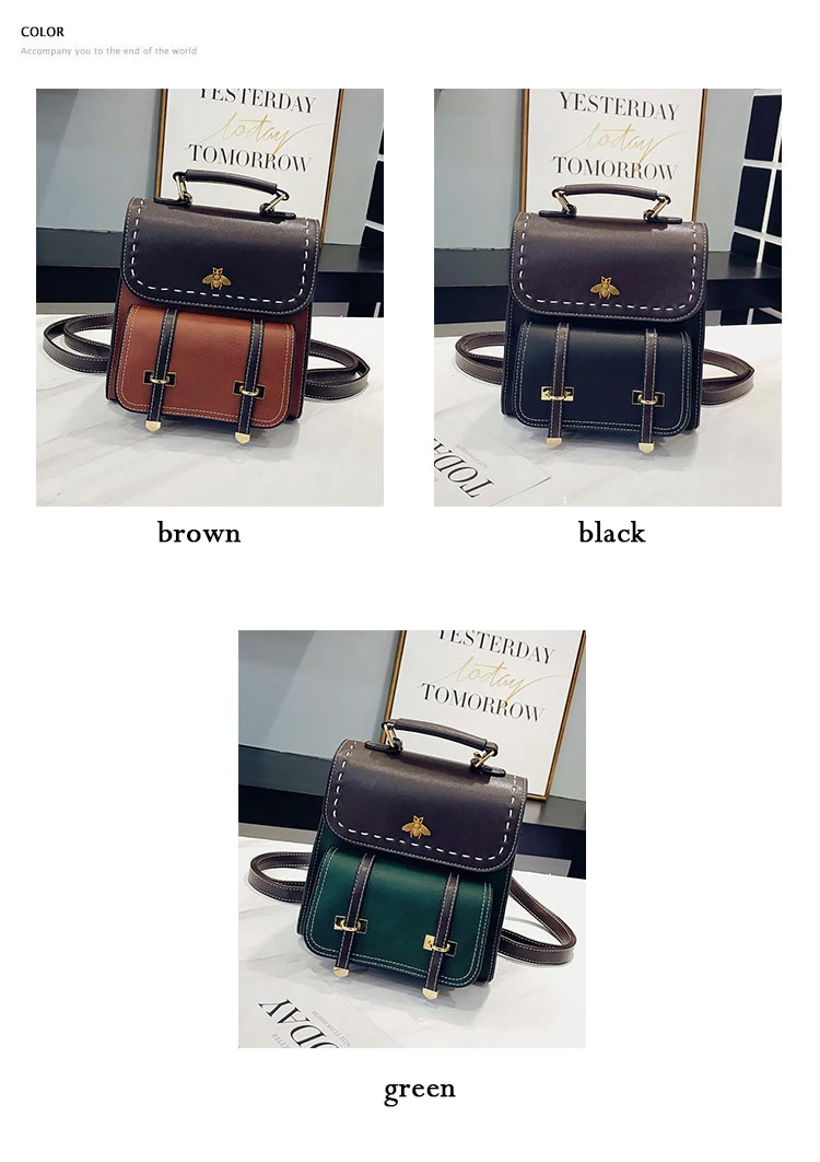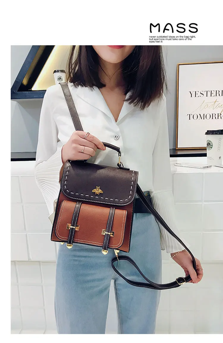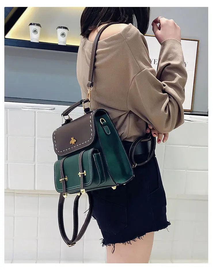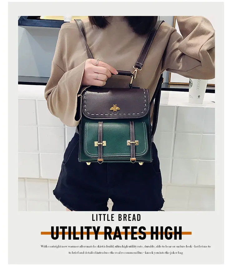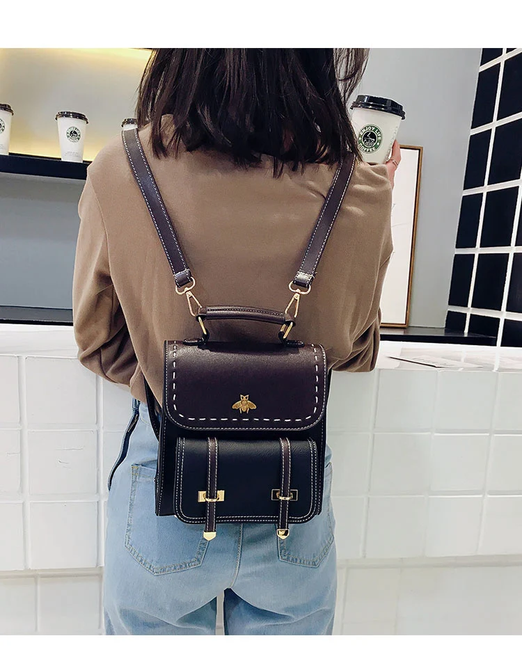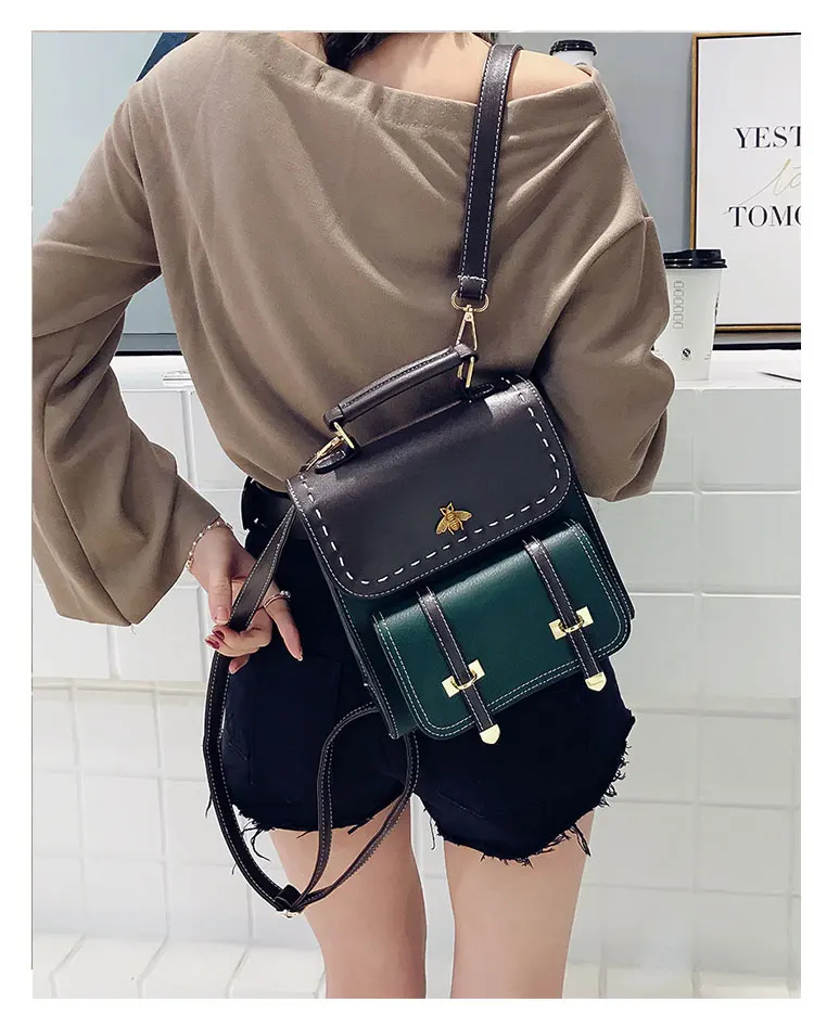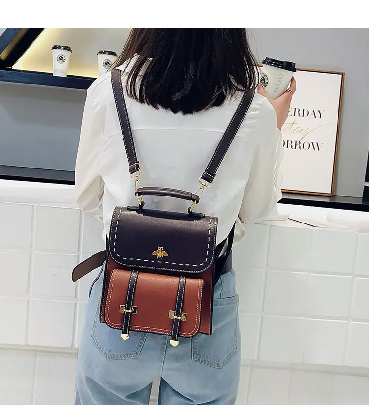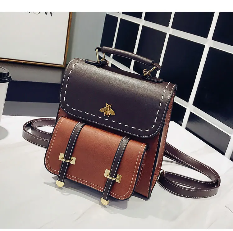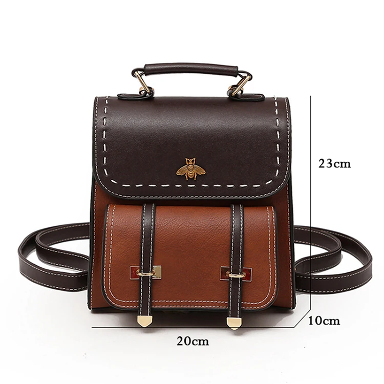 Винтажный женский рюкзак из искусственной кожи со вставками, школьный ранец в английском стиле для девочек, Женская дорожная сумка с маленькой Пчелой