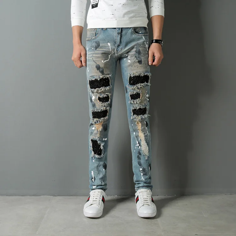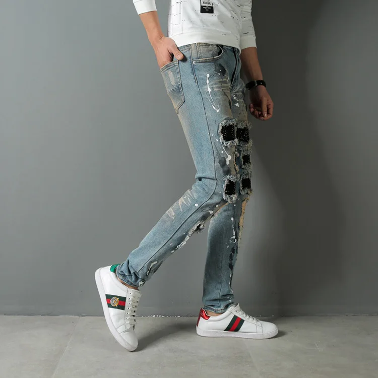 April MOMO 2021 брендовые джинсы ретро ностальгические прямые брюки пэчворк вышивка Мужские джинсы брюки мотоциклетный тренд дизайн