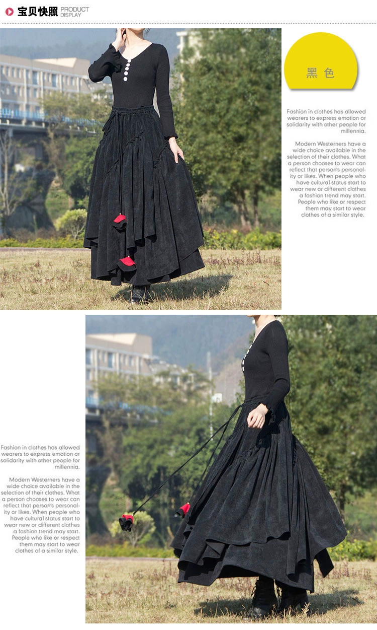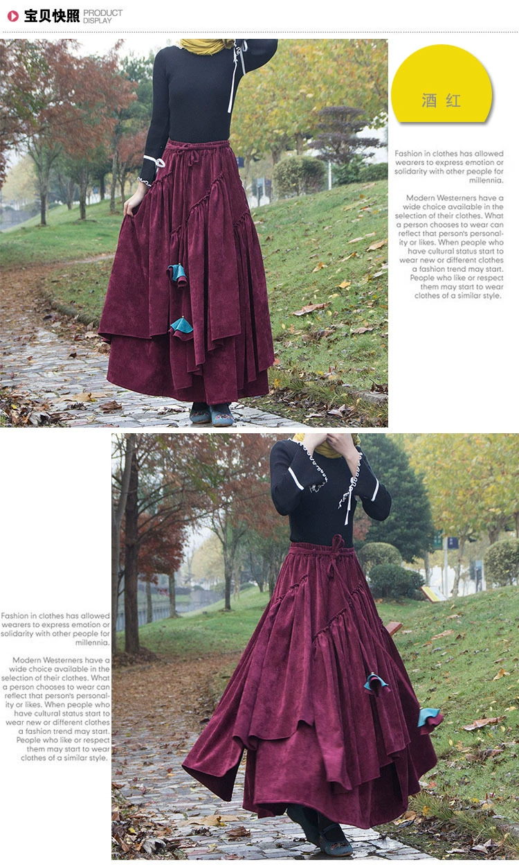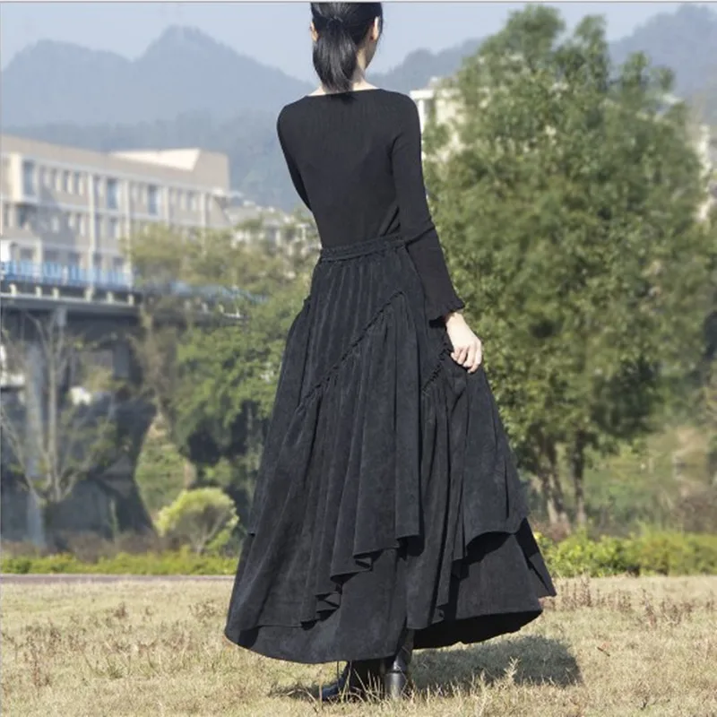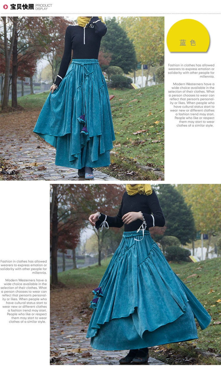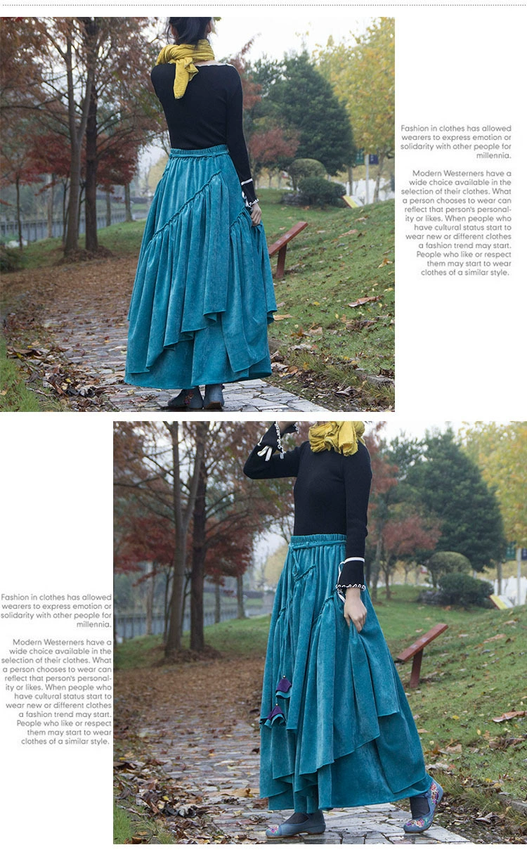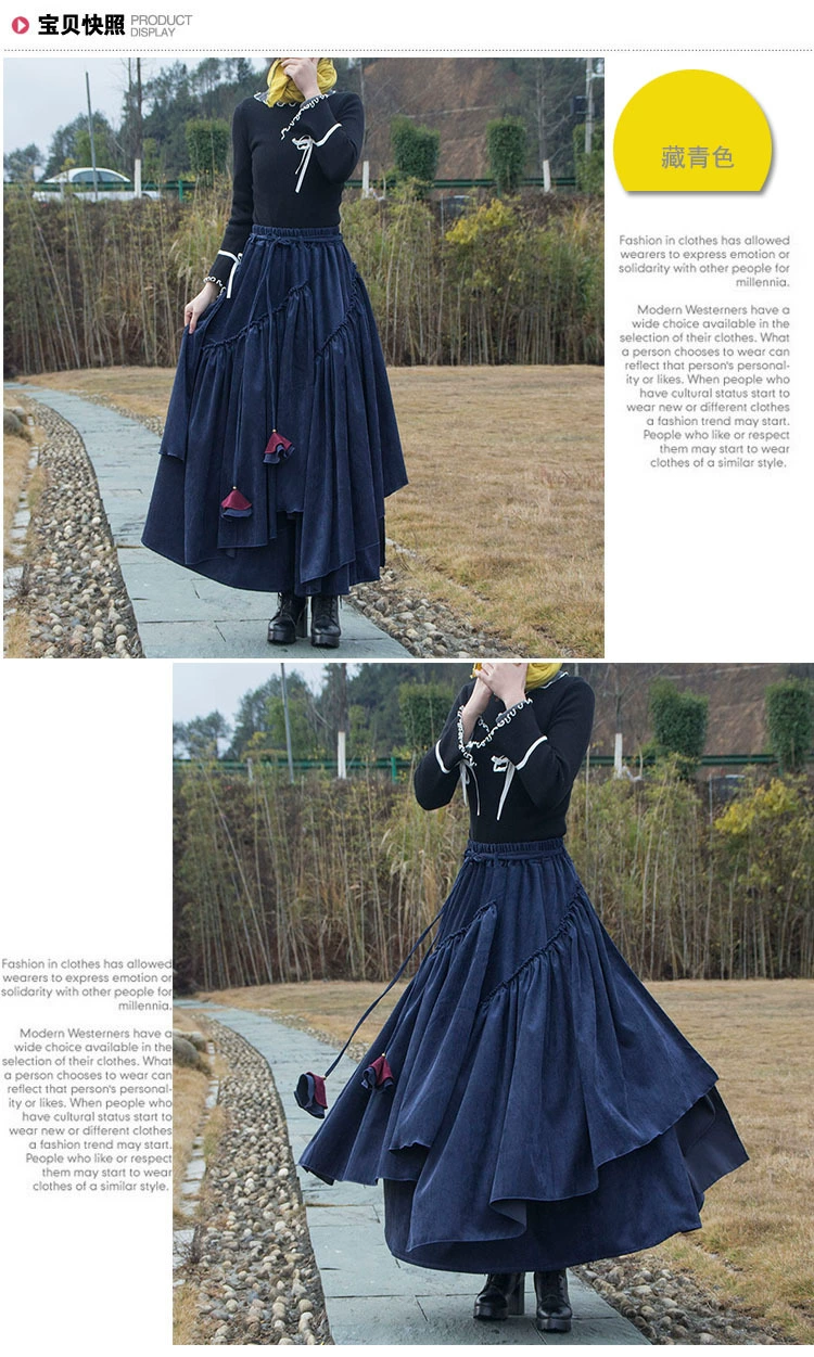Женская длинная трапециевидная юбка TIYIHAILEY, зимняя плотная теплая Вельветовая юбка в китайском стиле с эластичным поясом