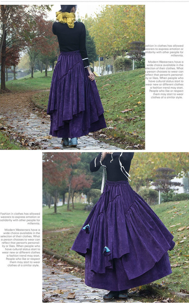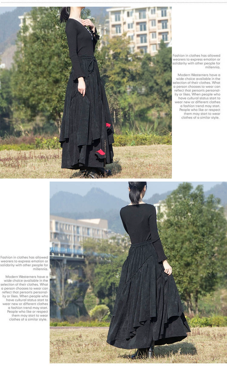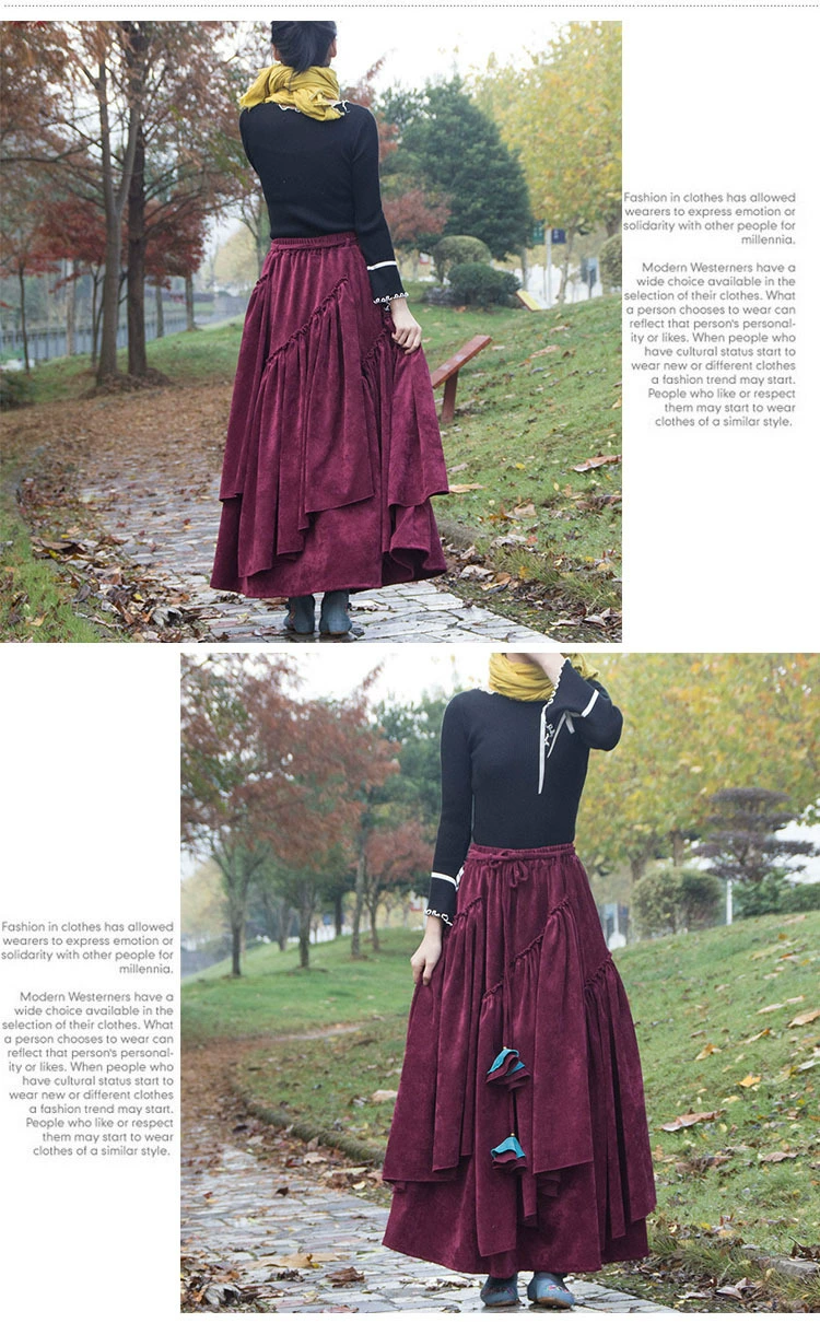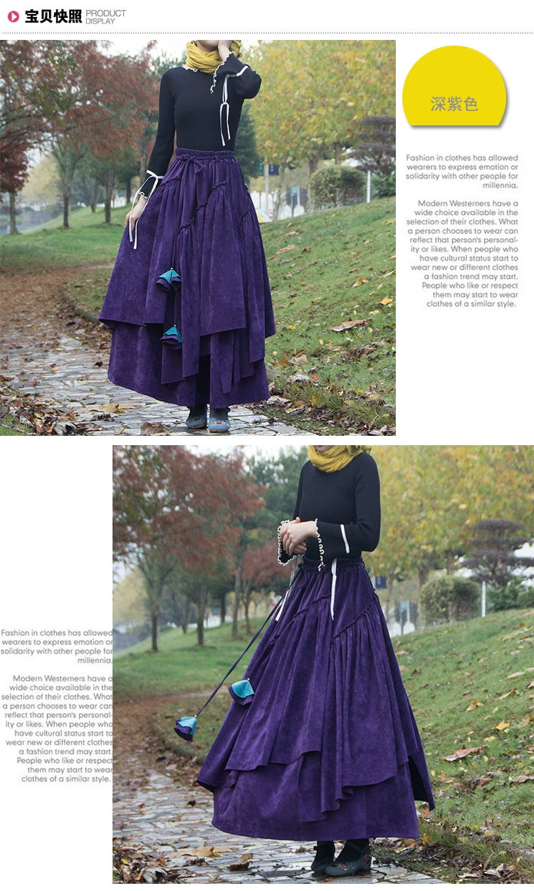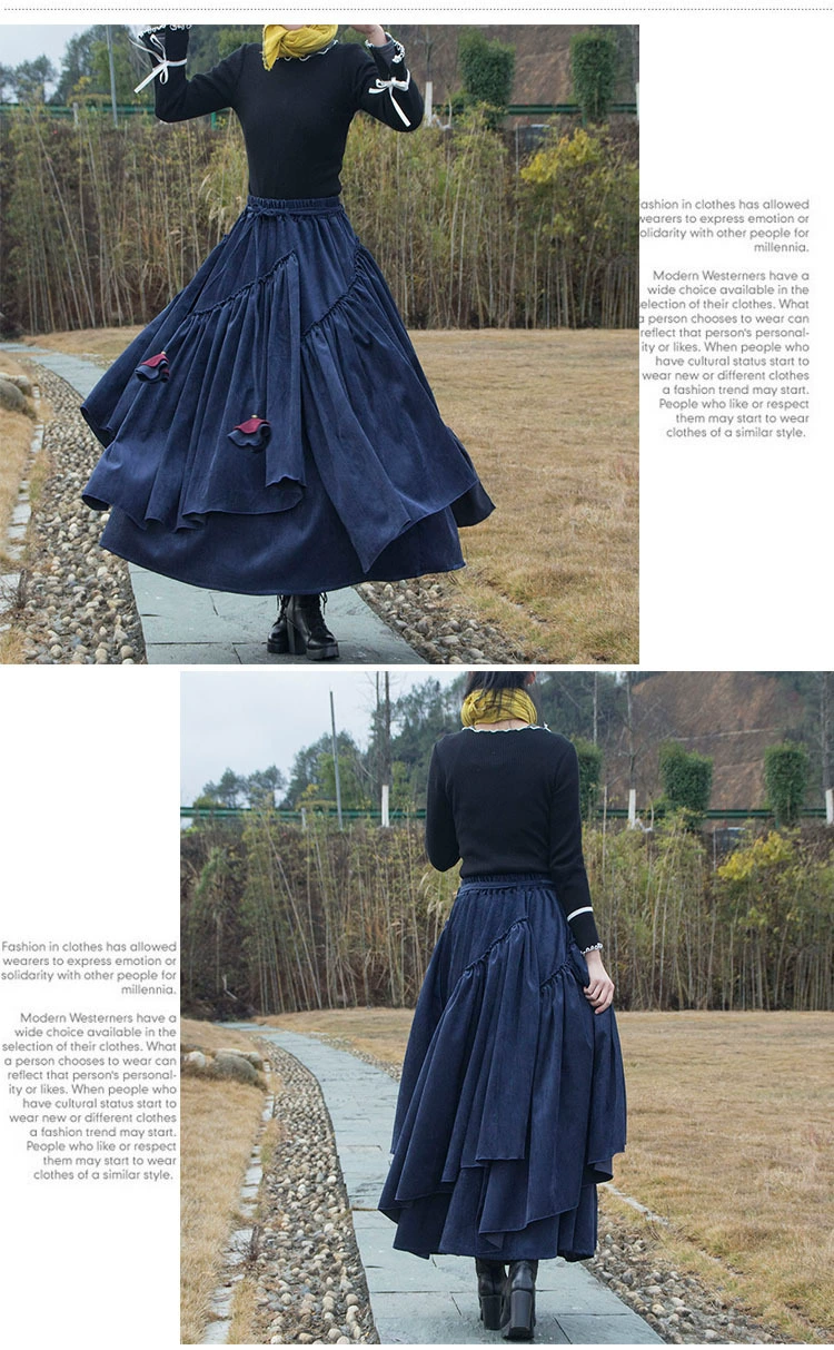 Женская длинная трапециевидная юбка TIYIHAILEY, зимняя плотная теплая Вельветовая юбка в китайском стиле с эластичным поясом