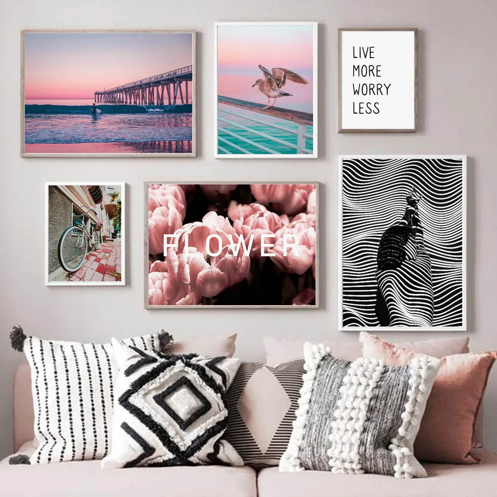 Девушка цветок велосипед Морской серфинг пейзаж настенная Картина на холсте скандинавские плакаты и принты настенные картины для декора гостиной