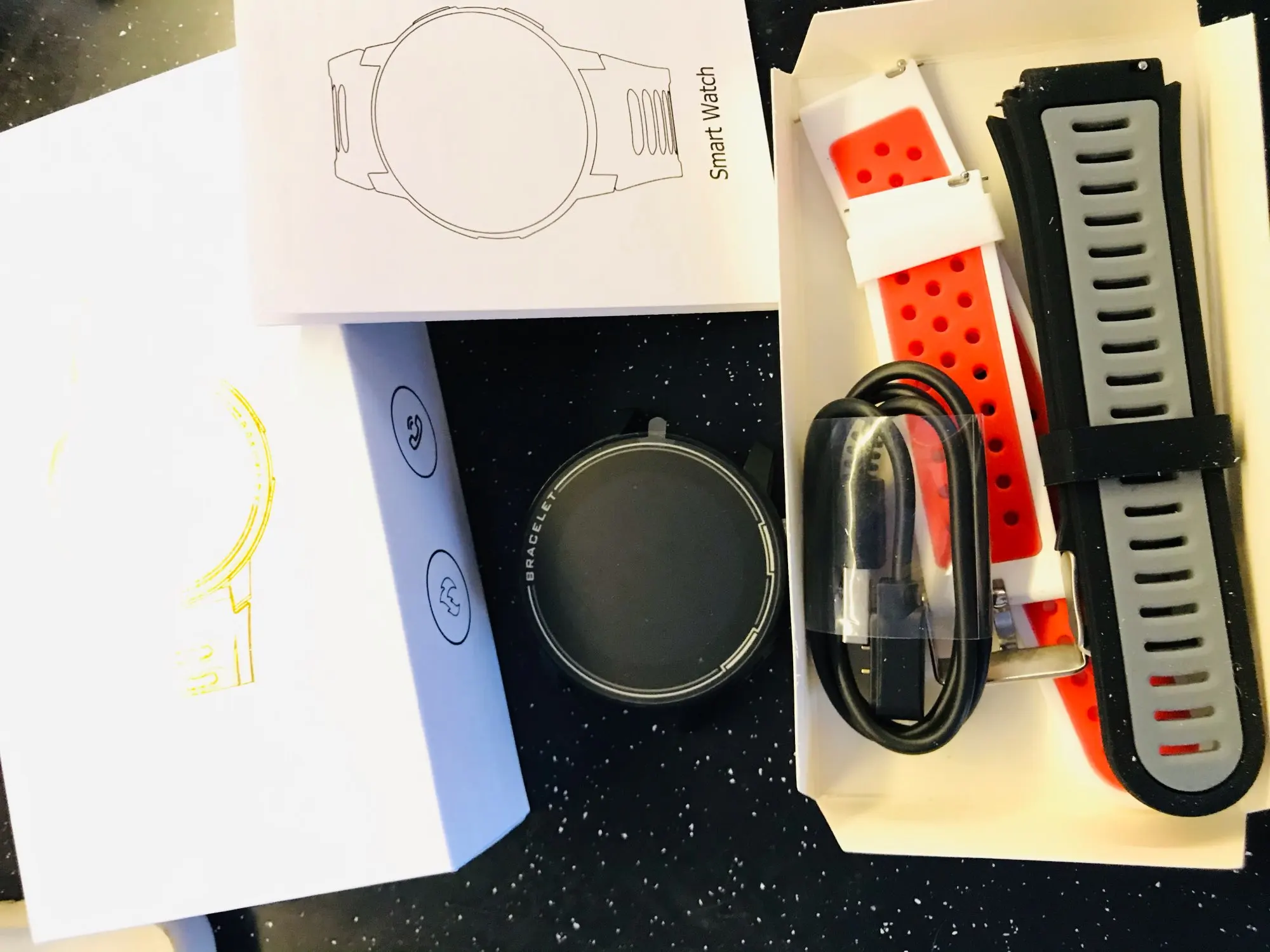 Очень нравятся фотографии, часы очень хорошего качества, функции работают гладко с аппликацией на вашем телефоне, очень интуитивное меню, удобный браслет, рекомендуется Мега Быстрая доставка для полировки действительно стоит того, чтобы купить. Еще не тестовый для бассейна.