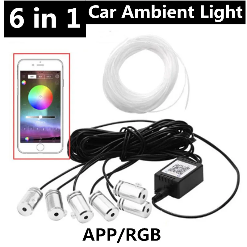 Светодиодные ленты RGB сделай сам 6 в 1, управление через приложение и Bluetooth, лампа для создания атмосферы в салоне автомобиля, музыкальные оптоволоконные ленты