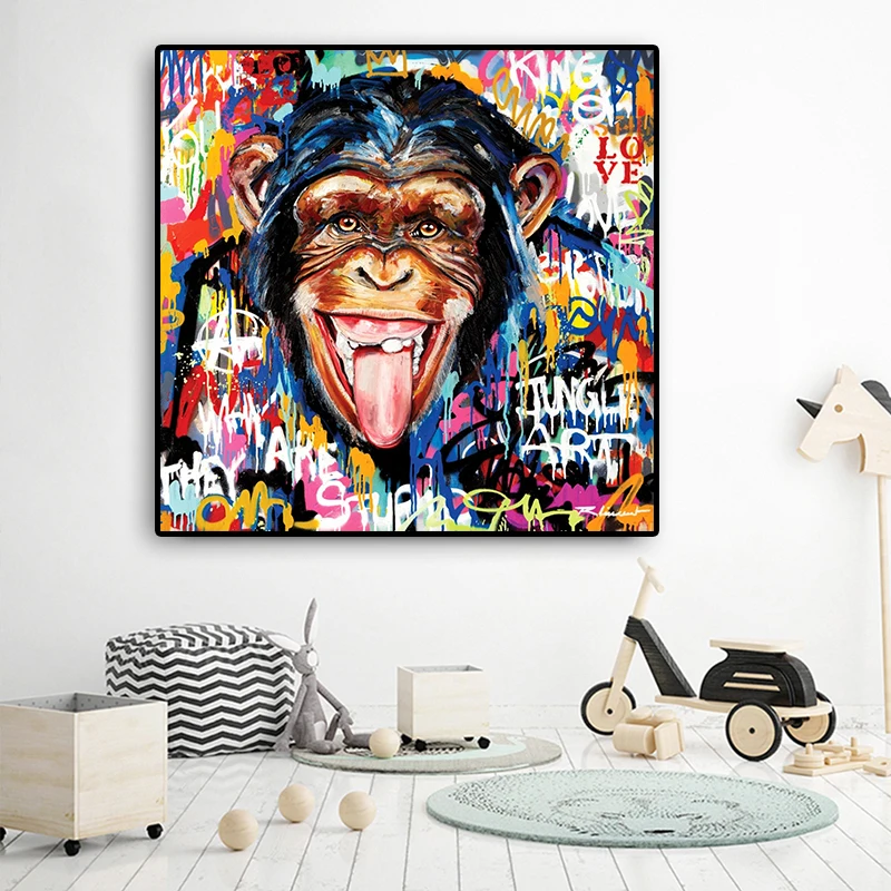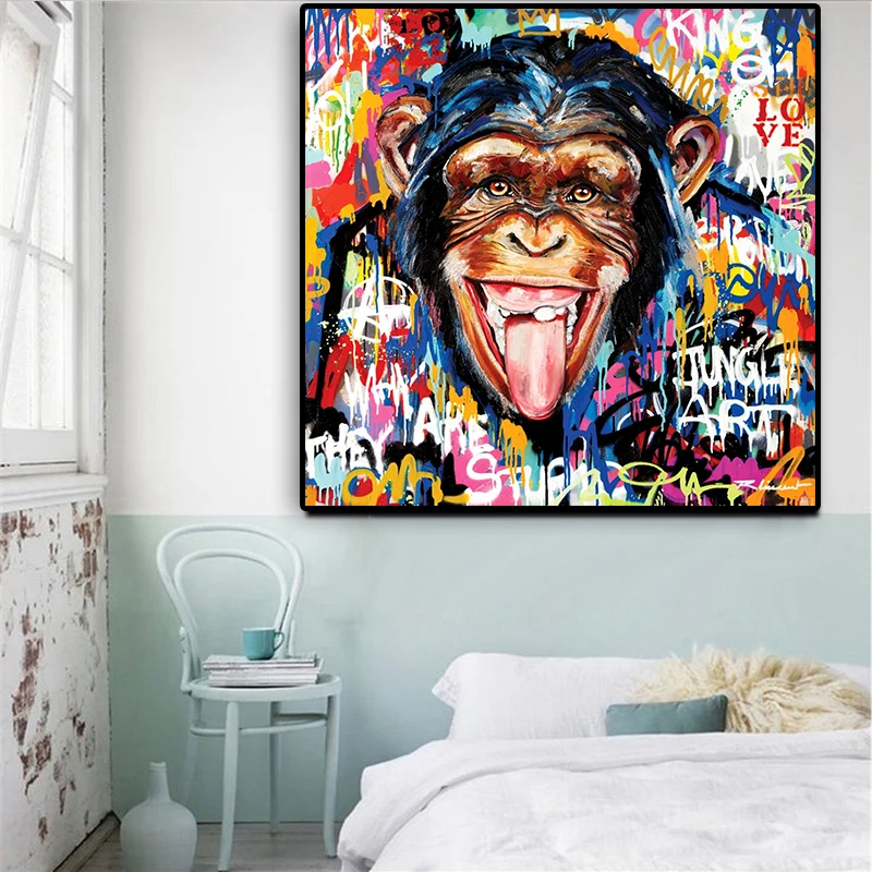 Постеры и принты Бэнкси на холсте, с забавными обезьянами, граффити...