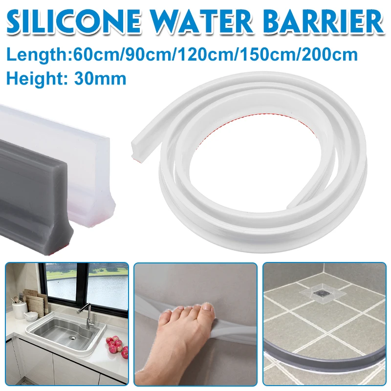 Водостойкая пробка для ванной комнаты высотой 30 мм, водоперегородка, сухой и влажный разделительный пол, барьер, резиновая плоская Силиконовая защита от воды, не скользит