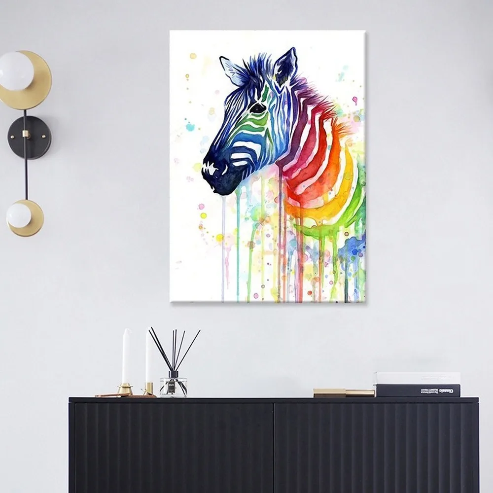 Красочные акварельные Зебра холст картина Радуга лошадь абстрактный животный принт плакат домашний декор исследование спальня Висячие фотографии