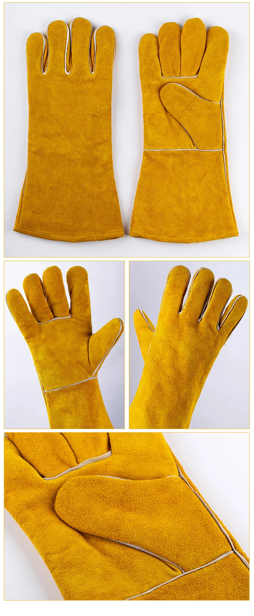1 пара, кожаные рабочие перчатки 35 см, термостойкие сварочные перчатки, защитные перчатки для сварщика, барбекю, печи, кемпинга