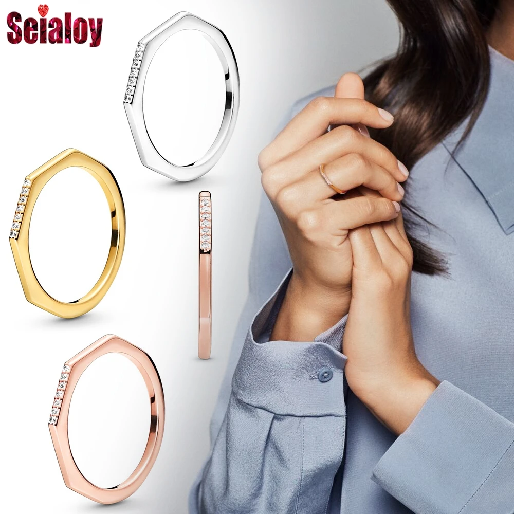 Seialoy, новая мода, блестящие многоугольные кольца для женщин, мужчин, девочек, дружба, стекируемые кольца, пара, свадьба, помолвка, ювелирное изделие, подарок