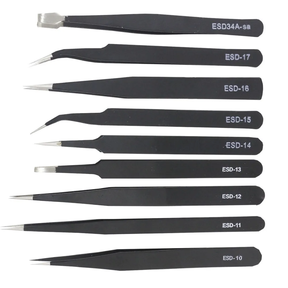 Название продукта: антистатические пинцеты с прямым краем Номер типа: ESD-10/11/12/13/14/15/16/17/sa Цвет: черный