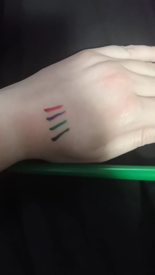 Отличная матовая подводка! Средней стойкости. Не растирается. Цвет немного отличается. Он не такой насыщенно зеленый. Зелень хорошо видно при сильном освещении. Не яркая повседневная зеленая подводка! Рекомендую!