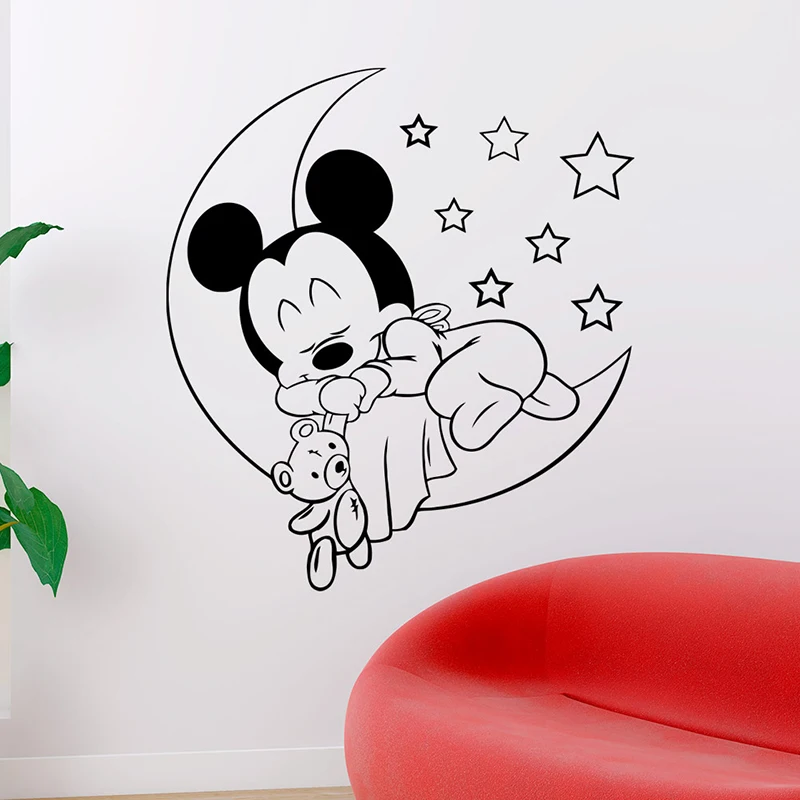 Disney с Микки-Маусом с Луной и звездами виниловые наклейки на стены хорошего сна настенные наклейки для детской комнаты, декор Детская Спальня настенная
