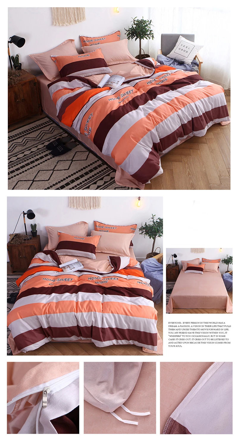 Комплект постельного белья в полоску, в скандинавском стиле, пододеяльник для пары, пододеяльник, простыня, простыня, односпальная, двуспальный, Королевский размер, 4 шт. постельного белья