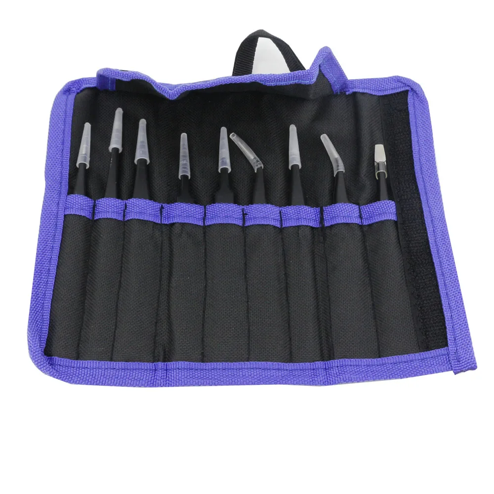 Пинцет с закругленнымипрямыми краями из нержавеющей стали, 9 комплектов, черный пинцет, 10-34A, набор инструментов для разборки холста, сделай сам
