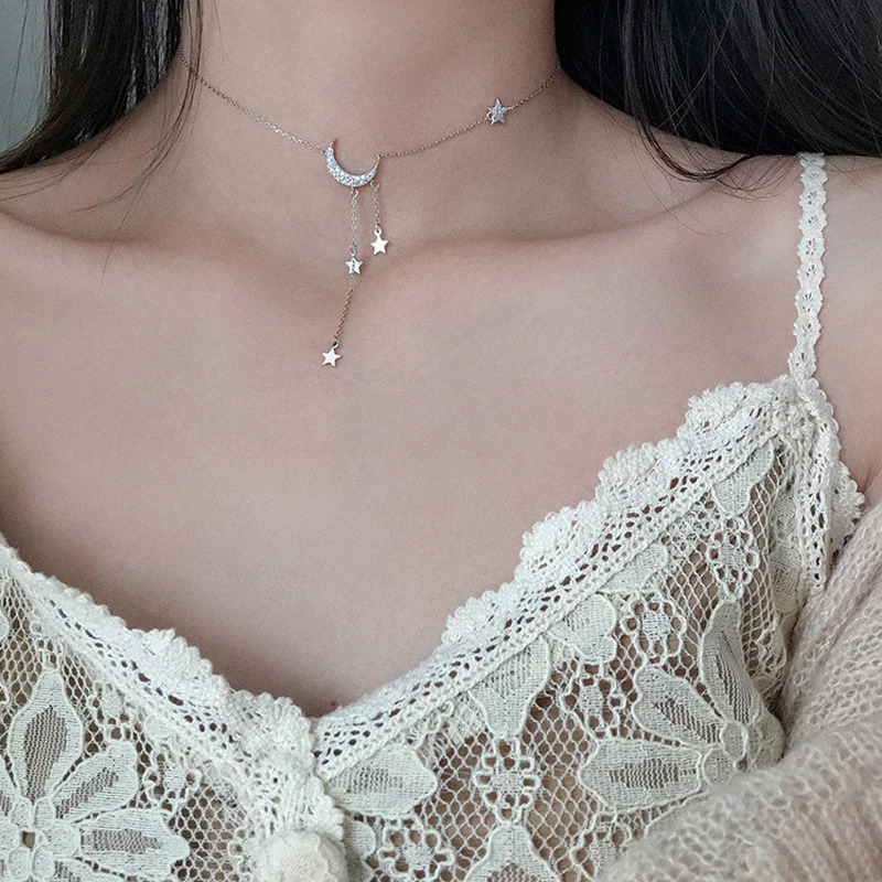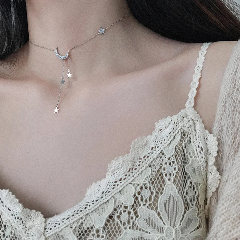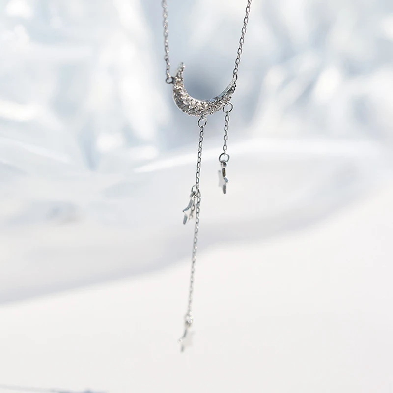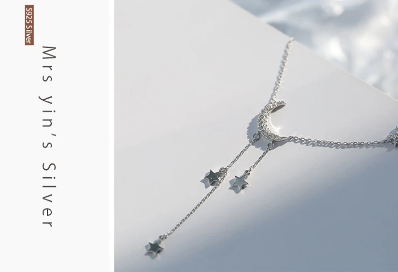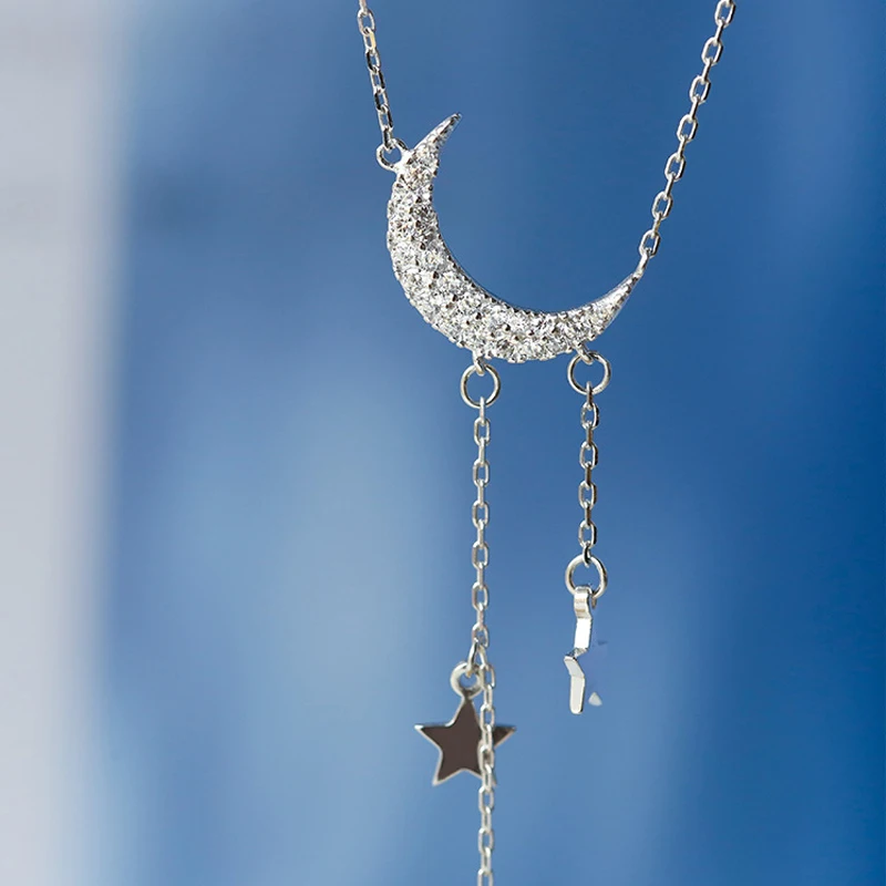 Модные 925 пробы серебряные милые звезды лунные Ожерелья Звезда для девушки колье ожерелье Свадебные ювелирные изделия NK007