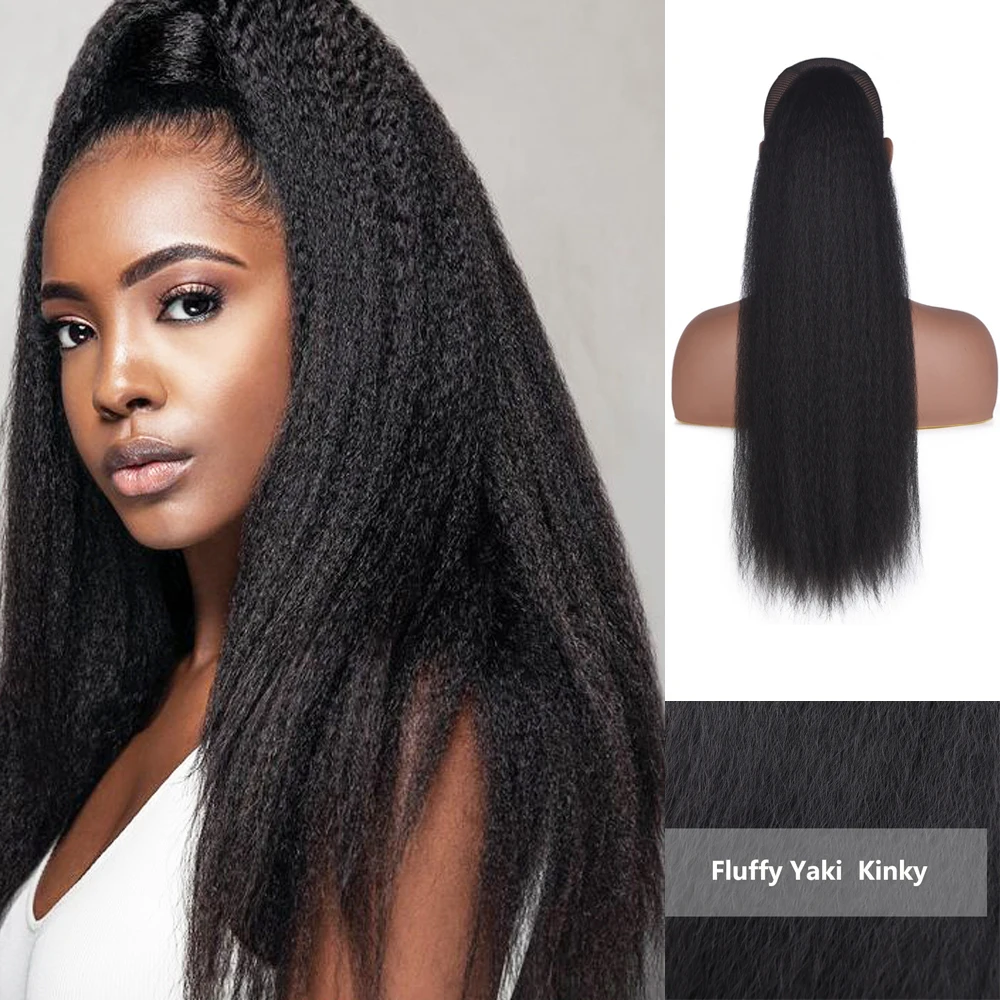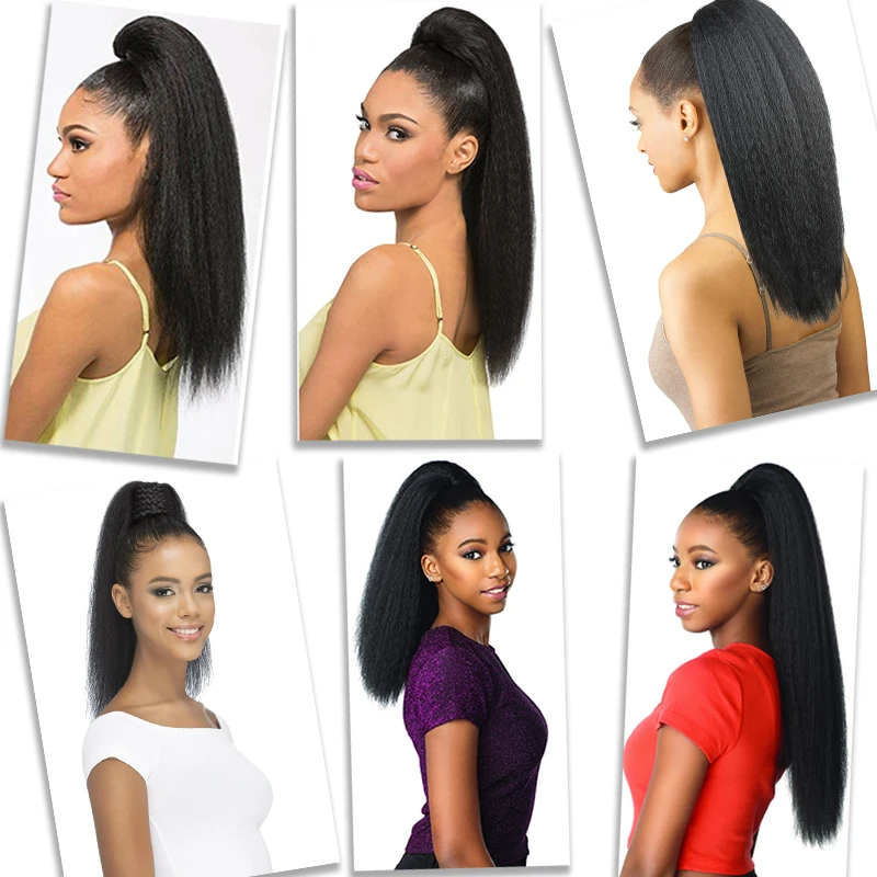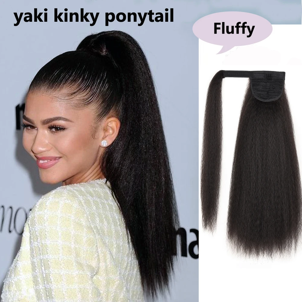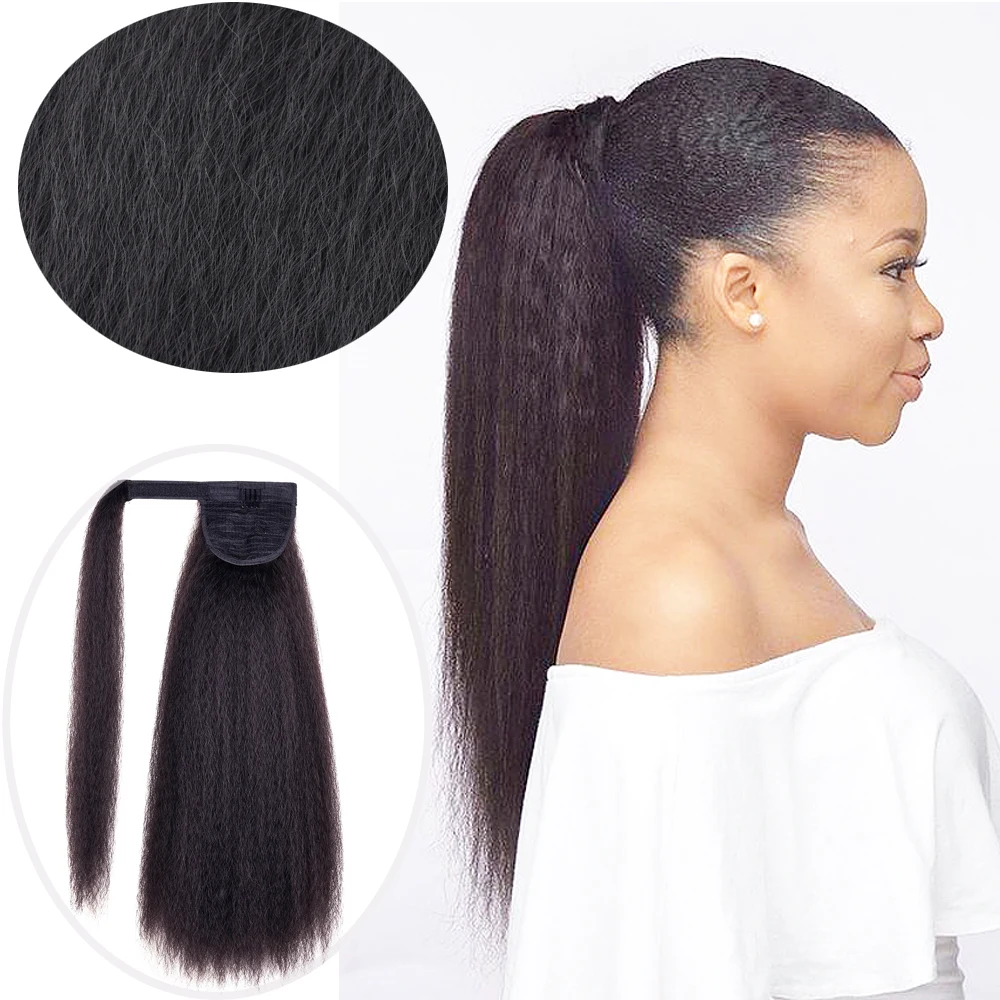 Афро кудрявые прямые длинные конский хвост синтетические обертки вокруг волшебной пасты наращивание волос натуральный черный конский хвост 22 дюйма