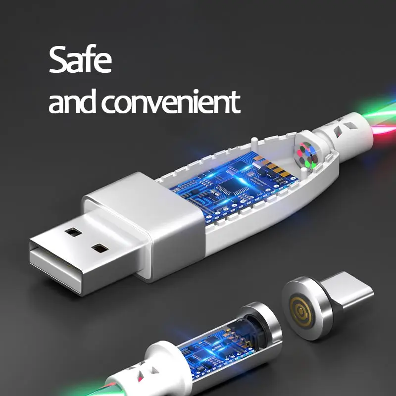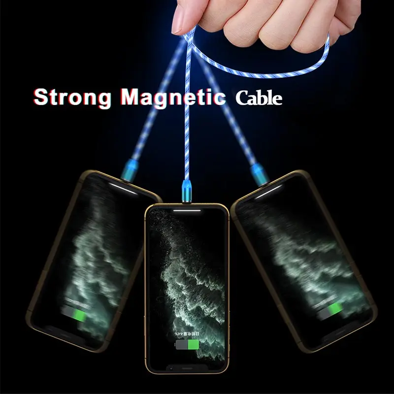 Зарядный кабель Micro USB Type-C, магнитный, со светодиодной подсве...