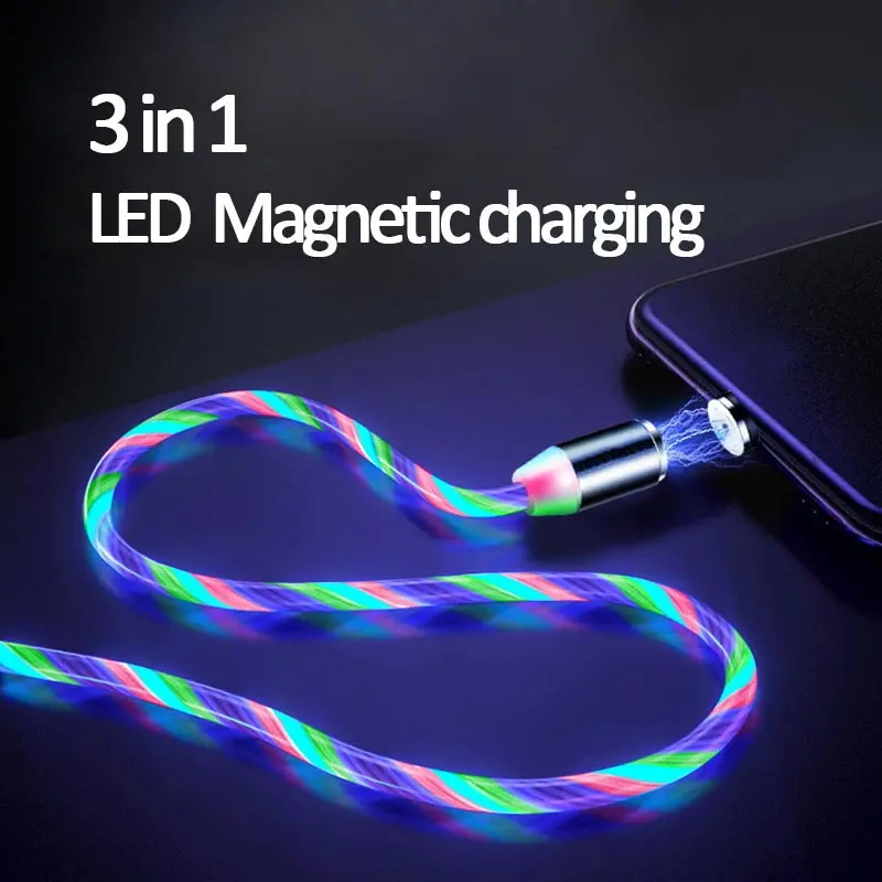 Магнитный кабель Micro USB Type-C, светящийся, со светодиодной подс...
