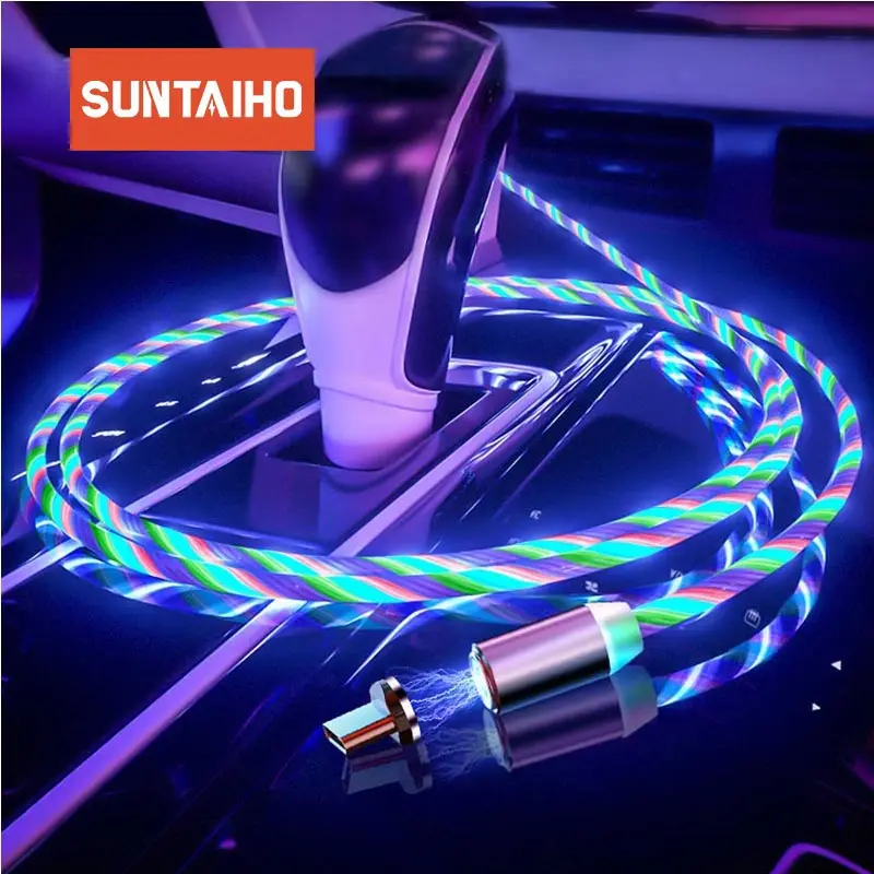 Магнитный фотокабель Suntaiho, кабель USB Type-C длиной 1 м, светящийся провод для передачи данных для Samsung S10 9 Huawei, светодиодный кабель Micro usb