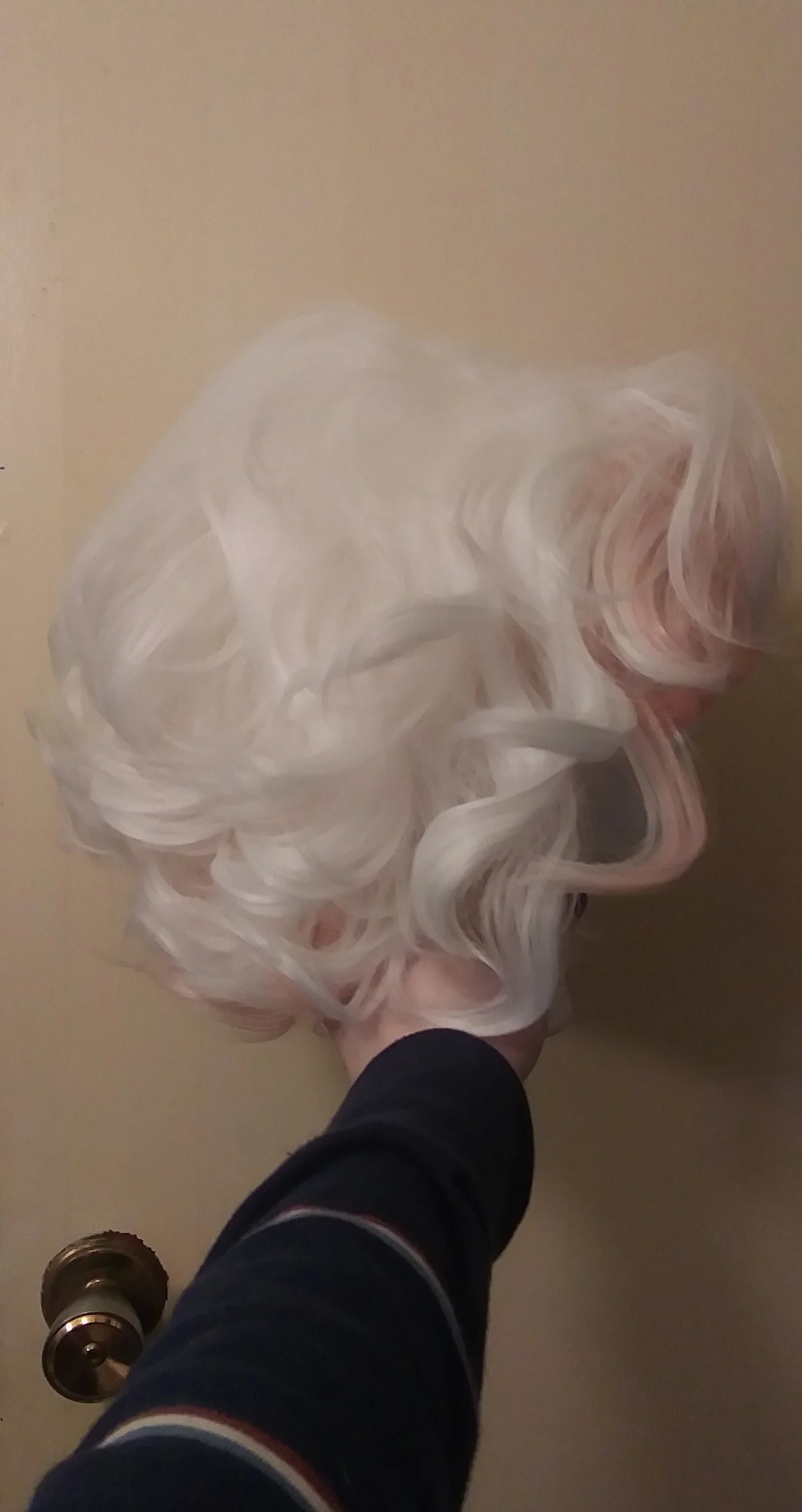 Парик довольно приличный. Он идет кудрявым (минус передние биты) и не слишком блестящим, когда он тусклый (не очень яркий свет, однако [изображен ниже]). Несмотря на то, что он солодовый тонна, он не кажется слишком тонким. Кроме того, парик поставляется с париком (не лучшее качество, но привет). Второй цвет на парике (то, что должно быть бледно-розовой), выглядит более розовым и может быть немного очевидным по сравнению с самим Nagito. Я попытаемся его стилизовать и дополнительно добавить в обзор тот, который я сделал так.